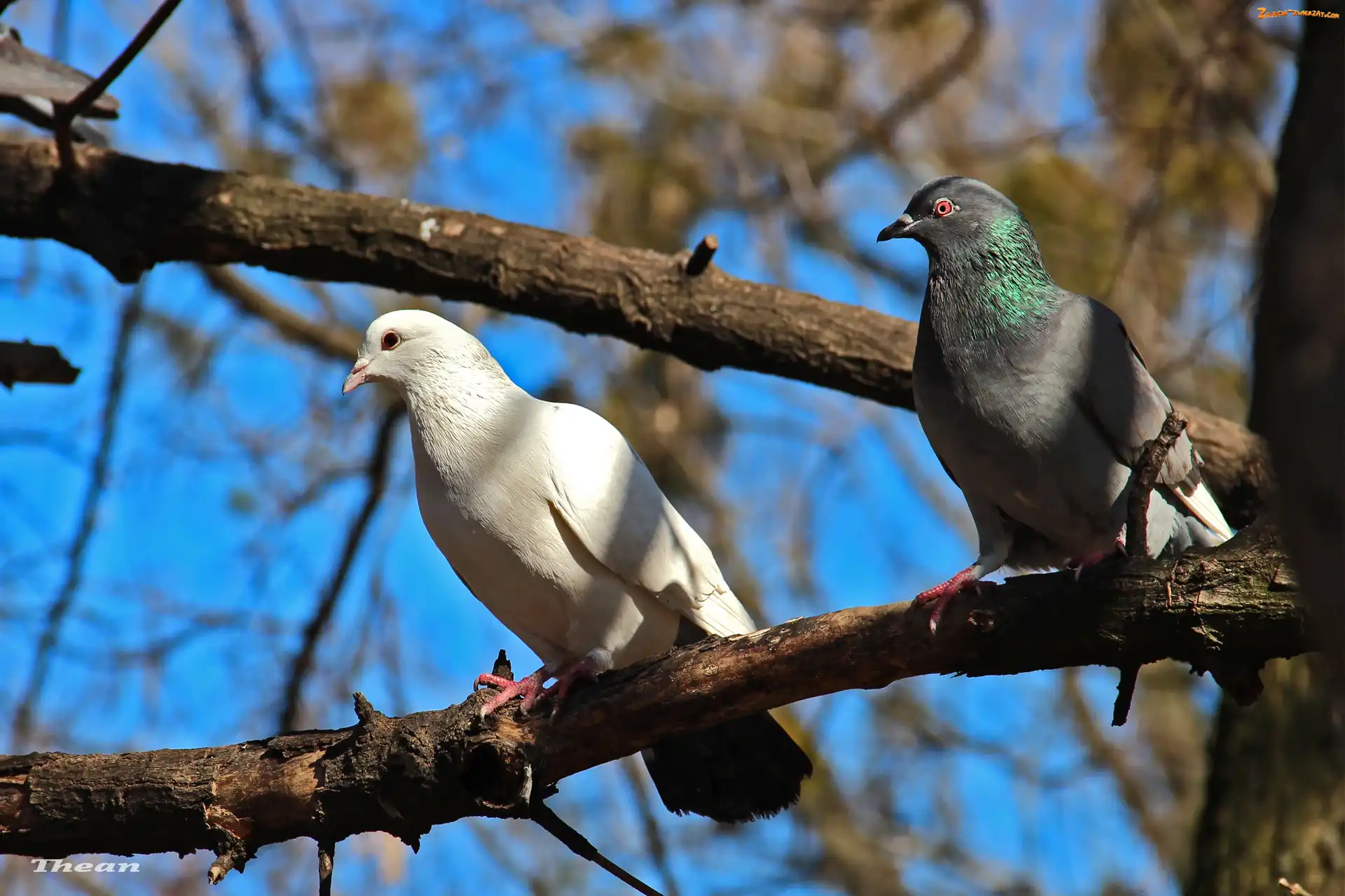 Zdjęcie: Gołębie, Gałęzi, Dwa, Na