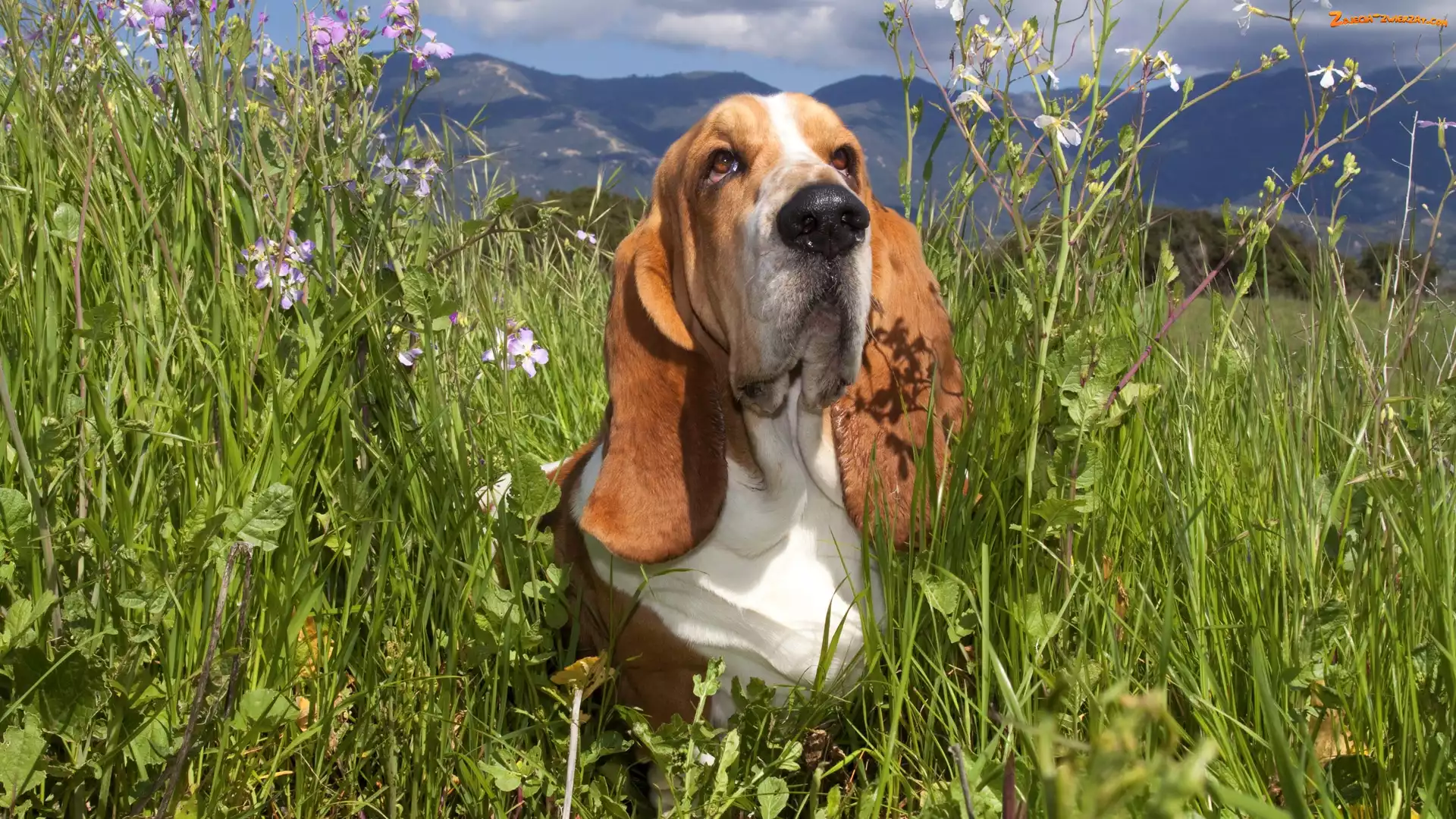 , Psy, Bassety Uszy, Basset, Długie Pieniek, Basset hound, Las Basset, Wielkie, Uszy Basset Fauve de Bretagne, smycz Basset, Góry, Łąka Basset Trawa, Szczeniak, Łąka, Basset hound