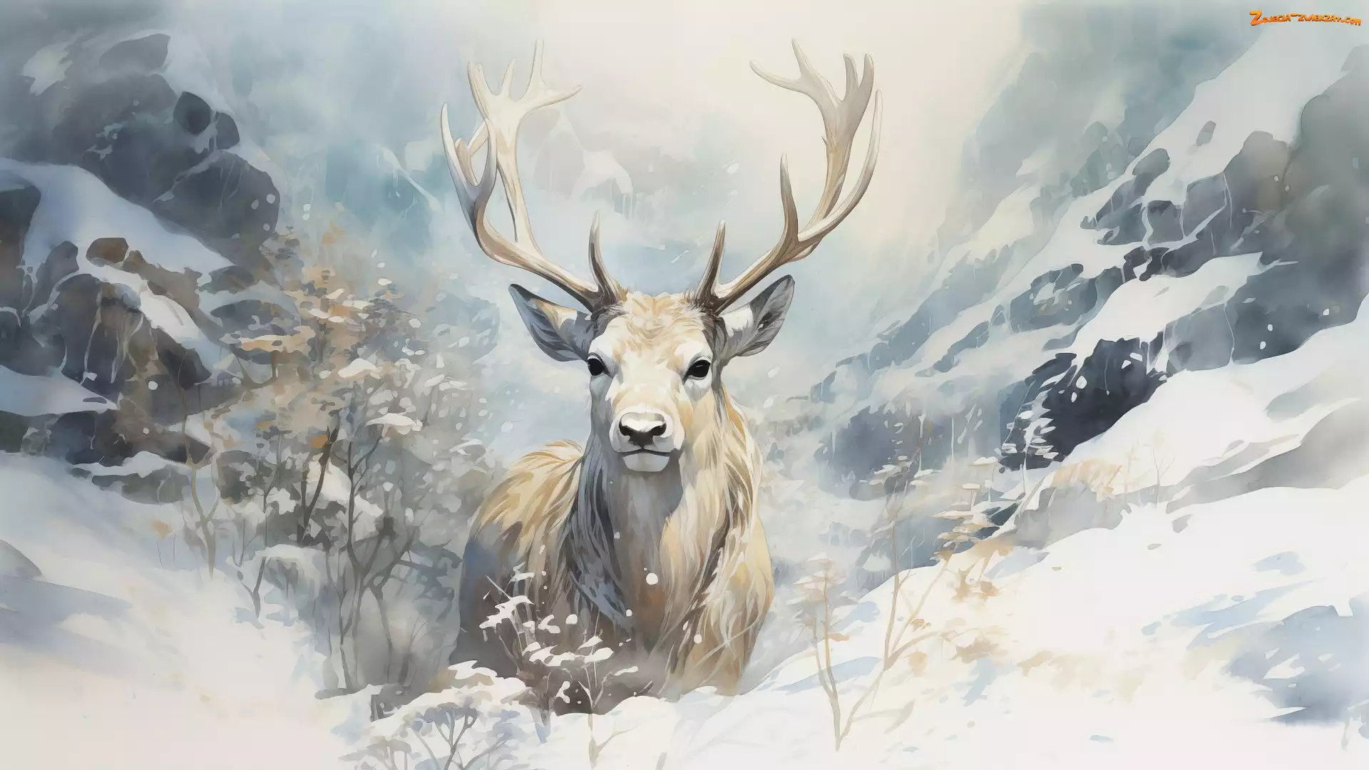 Zdjęcie: Śnieg, Góry, Grafika, Jeleń, Zima