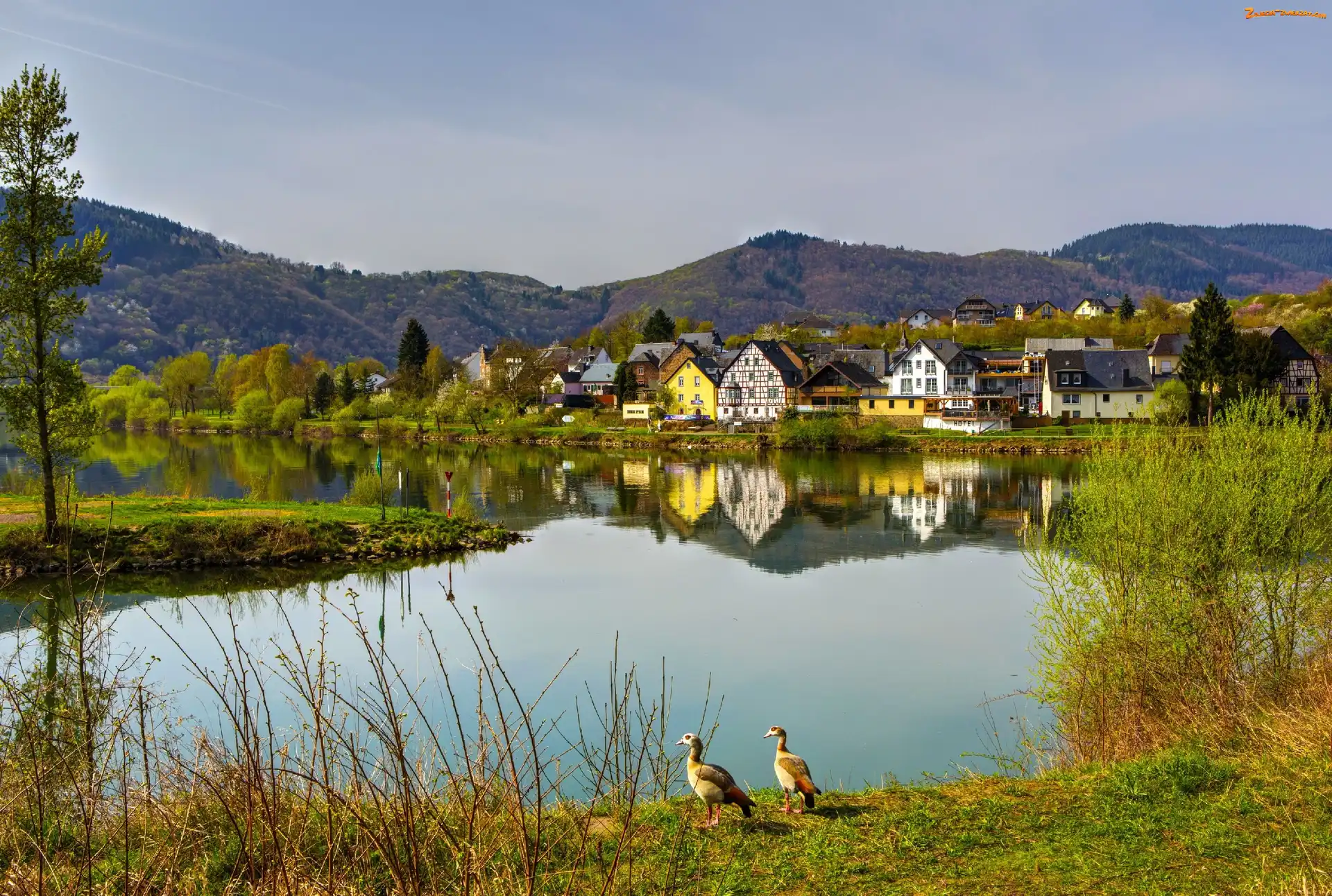Zdjęcie: Jesień, Góry, Rzeka, Kaczki, Niemcy, Miasteczko, Lasy