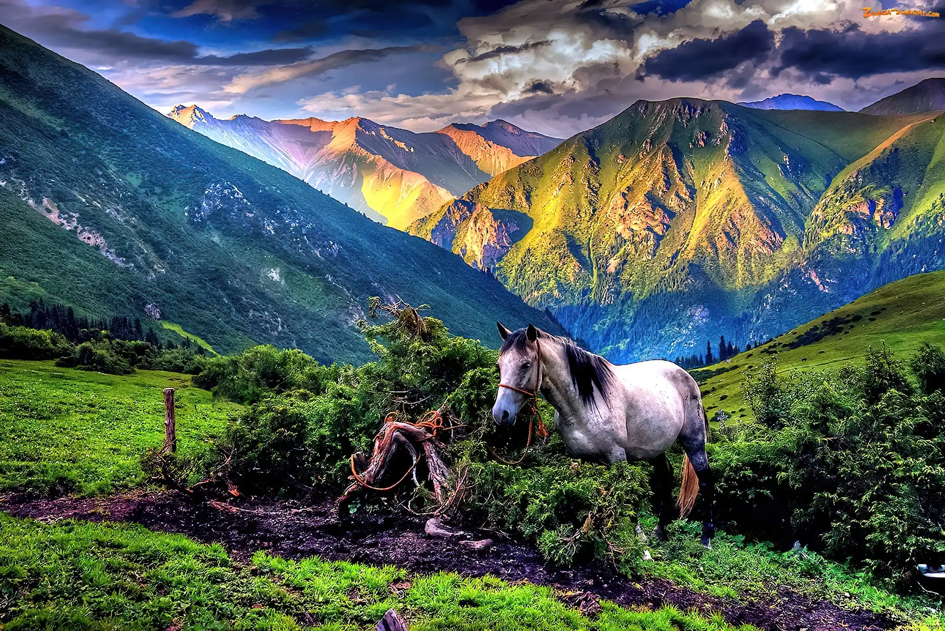 Zdjęcie: Koń, Góry, Chmury