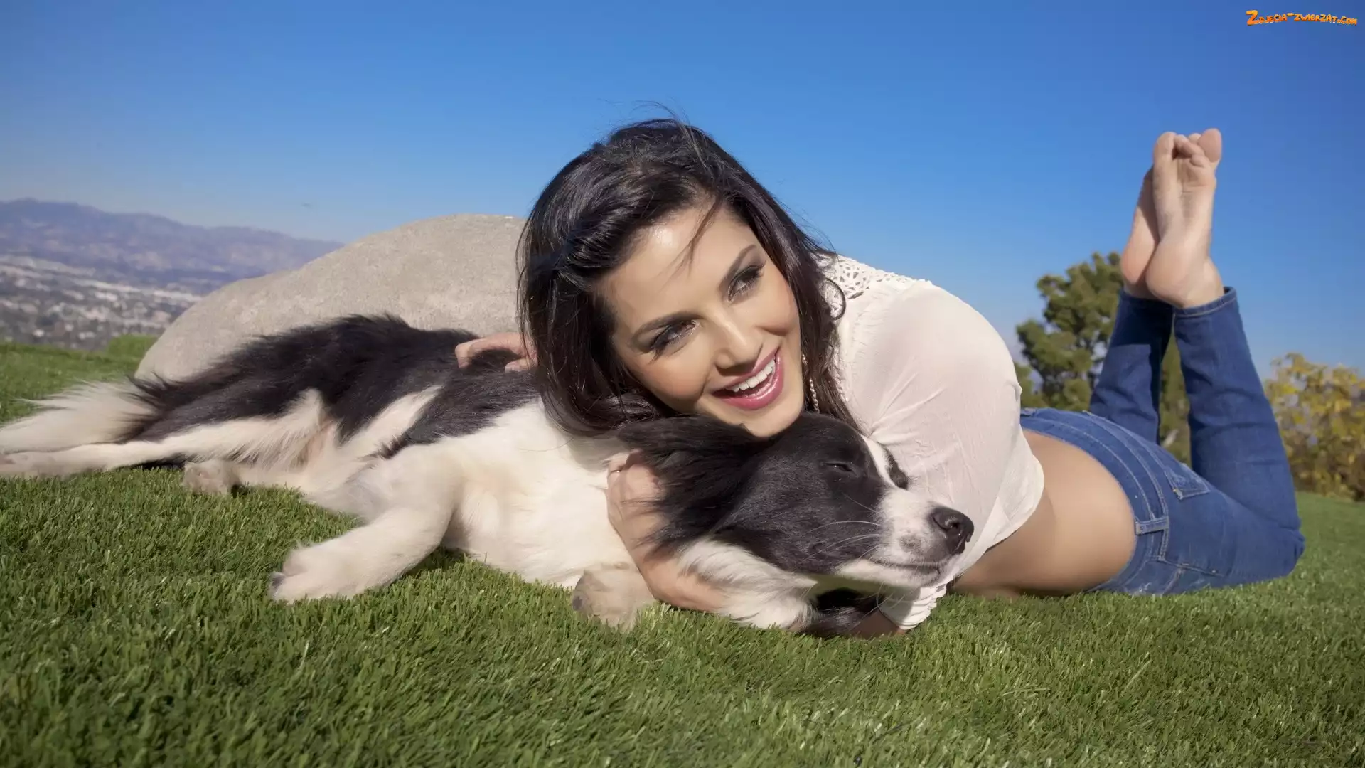 Zdjęcie: Góry, Pies, Dziewczyna, Radosna, Łąka