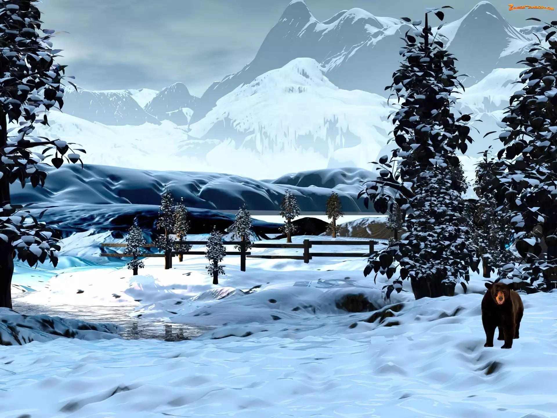 Zdjęcie: Góry, Grafika, Zima, Niedźwiedź