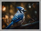 Modrosójka błękitna, Ptak, Grafika AI, Gałąź