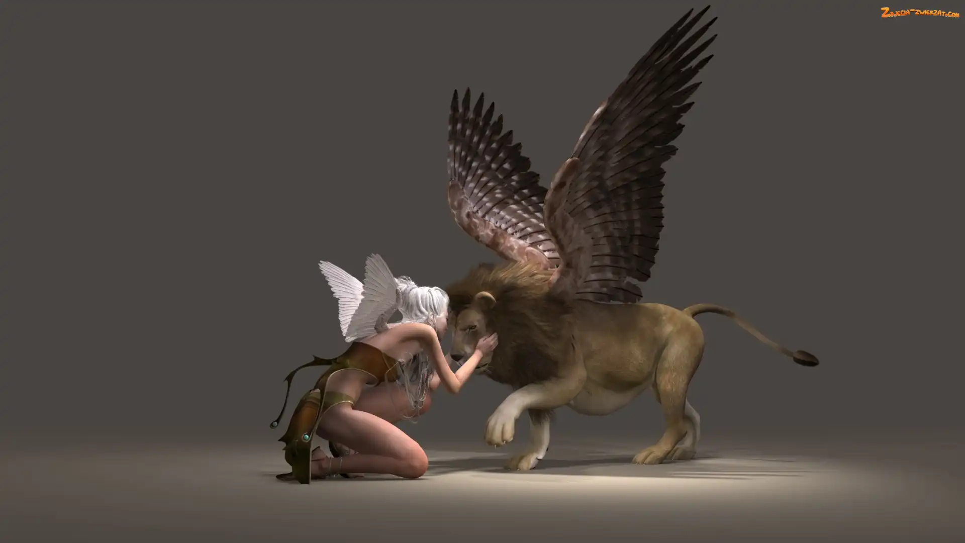 Zdjęcie: Grafika 3D, Skrzydła, Anioł, Kobieta, Lew