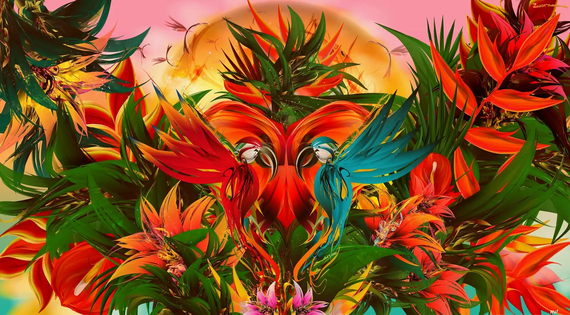 Zdjęcie: Grafika, Odbicie, Ptaki, Kolorowe, Symetryczne