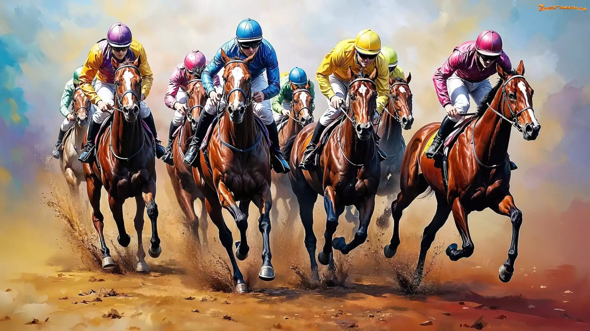 Zdjęcie: Dżokeje, Wyścigi konne, Grafika, Konie, Jeźdźcy, Mężczyźni