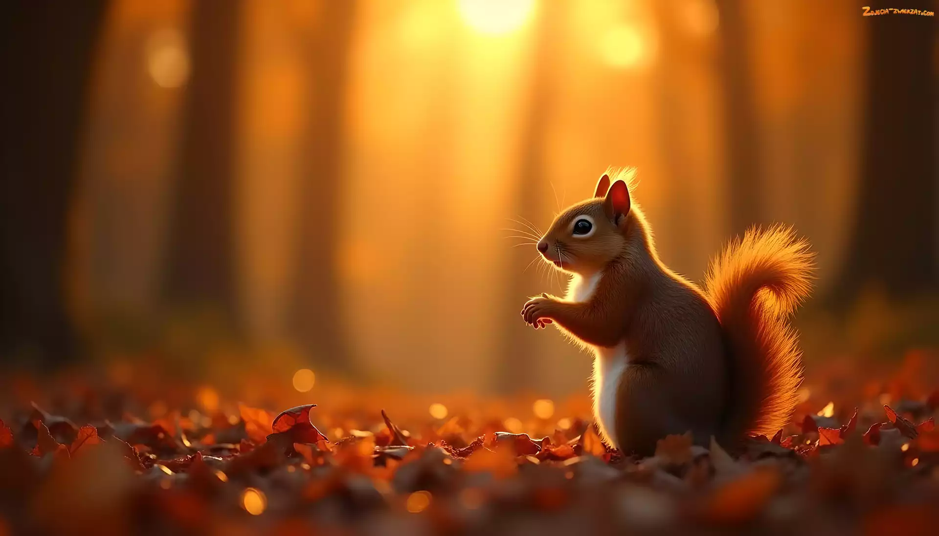 Zdjęcie: Grafika, Wiewiórka, Liście