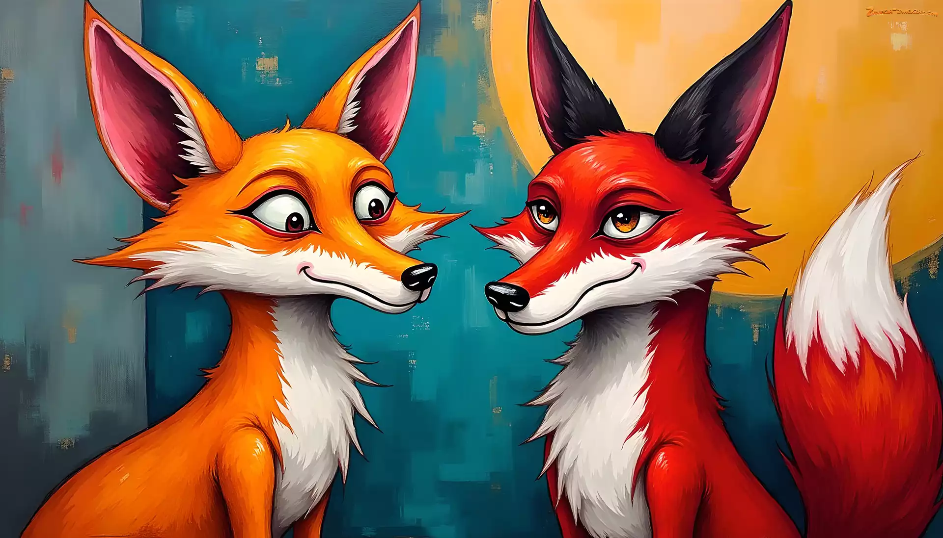 Zdjęcie: Grafika, Dwa, Lisy