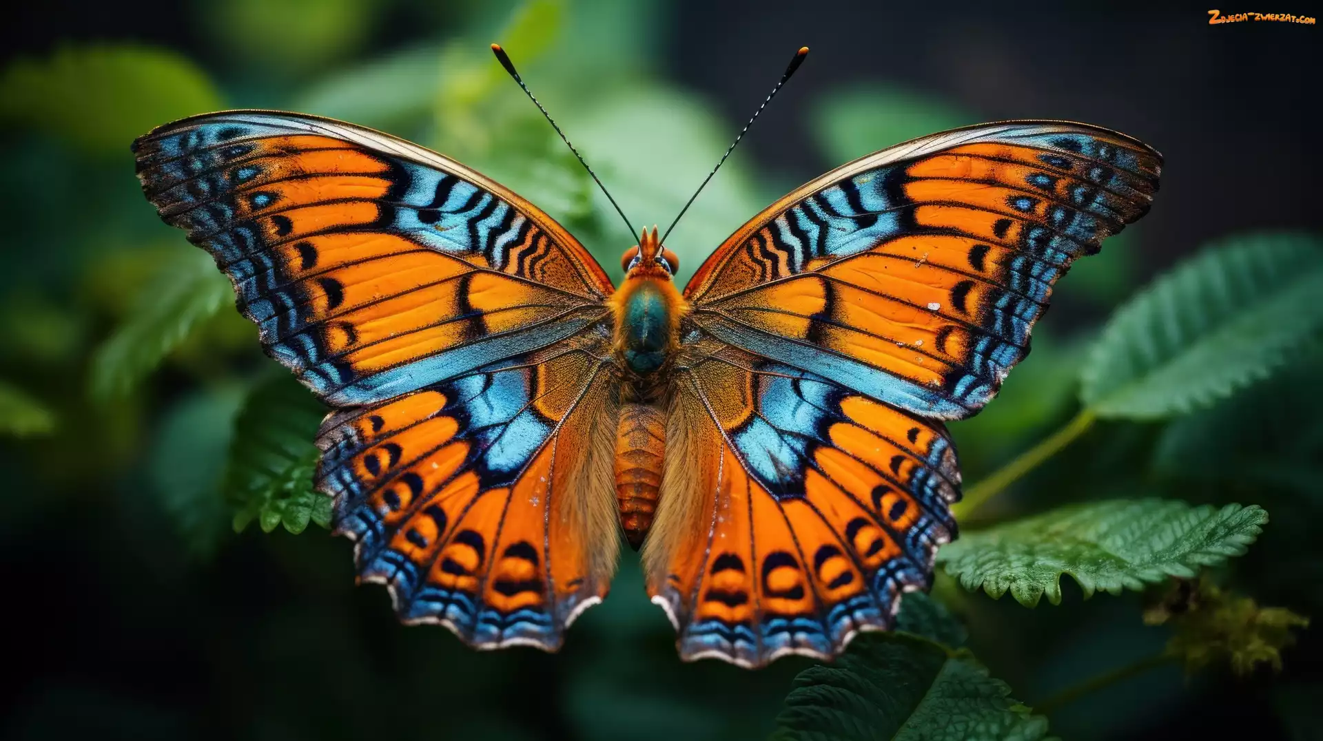 Zdjęcie: Liście, Pomarańczowo-niebieski, Grafika, Motyl, Owad