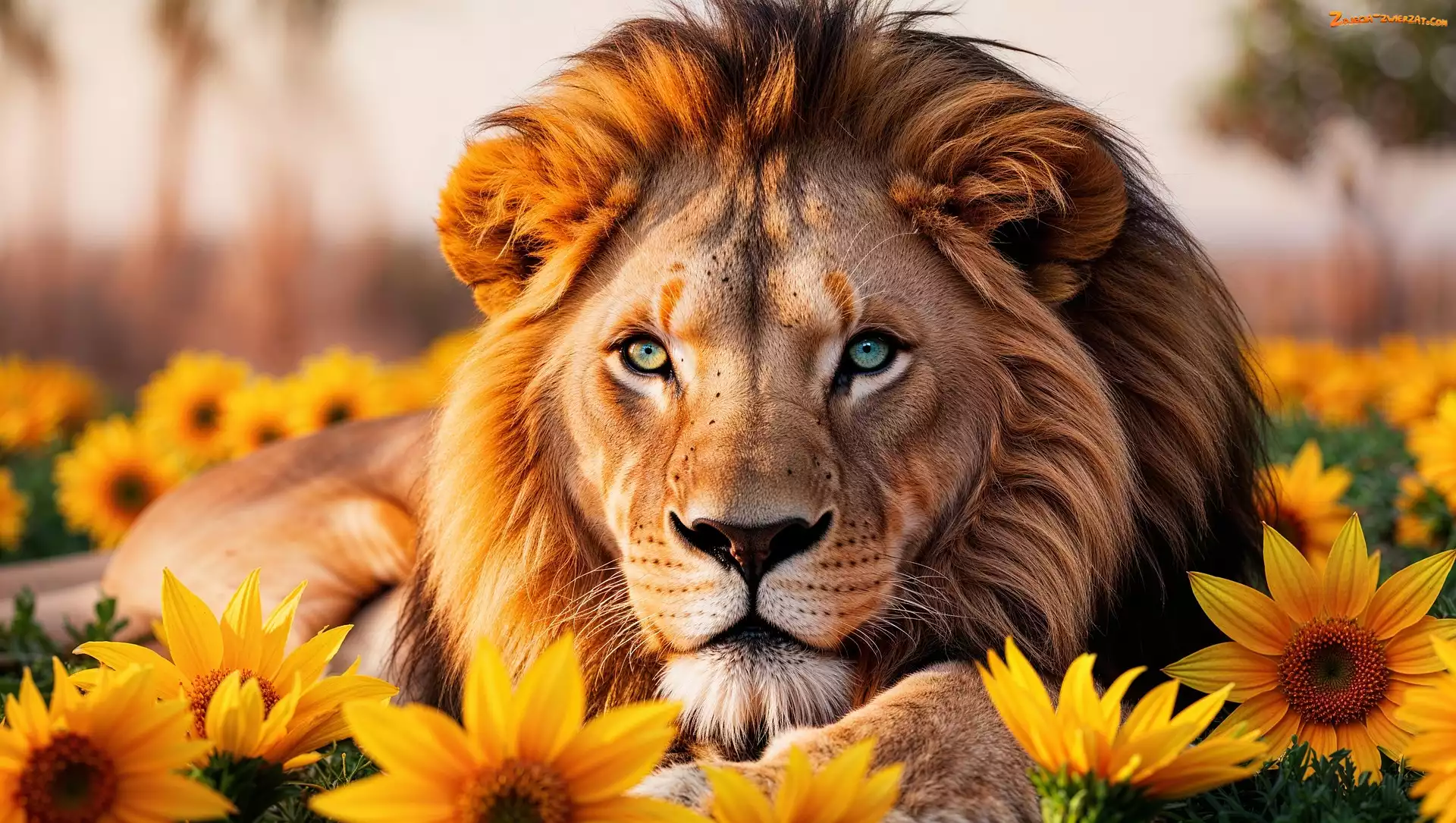 Zdjęcie: Grafika, Lew, Słoneczniki