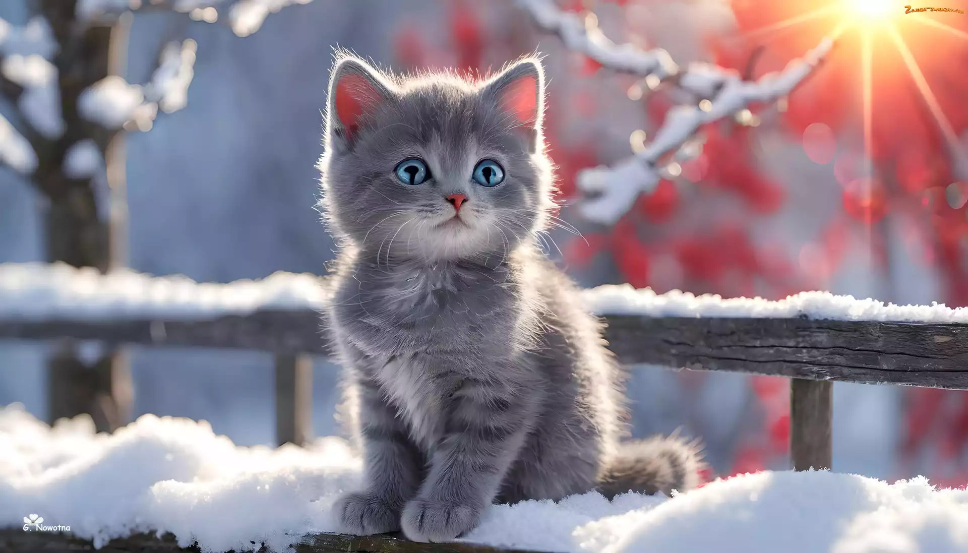 Zdjęcie: Szary, Kot, Śnieg, Grafika