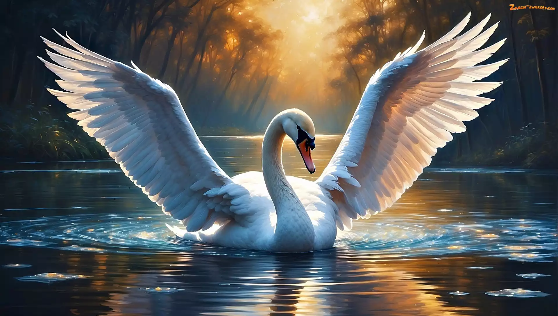 Grafika, Łabędź, Woda
