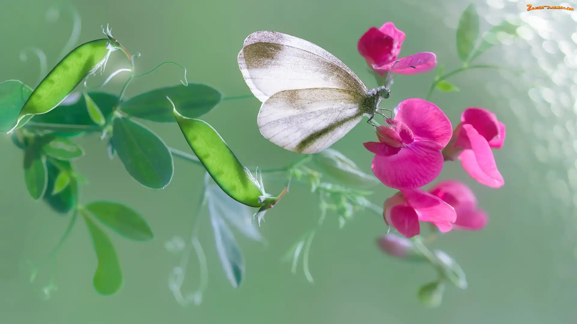 Zdjęcie: Groszek, Bielinek rzepnik, Kwiat, Motyl