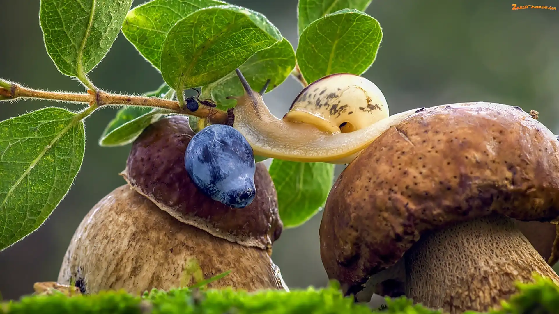 Zdjęcie: Ślimak, Borówka, Grzyby, Krzewinka