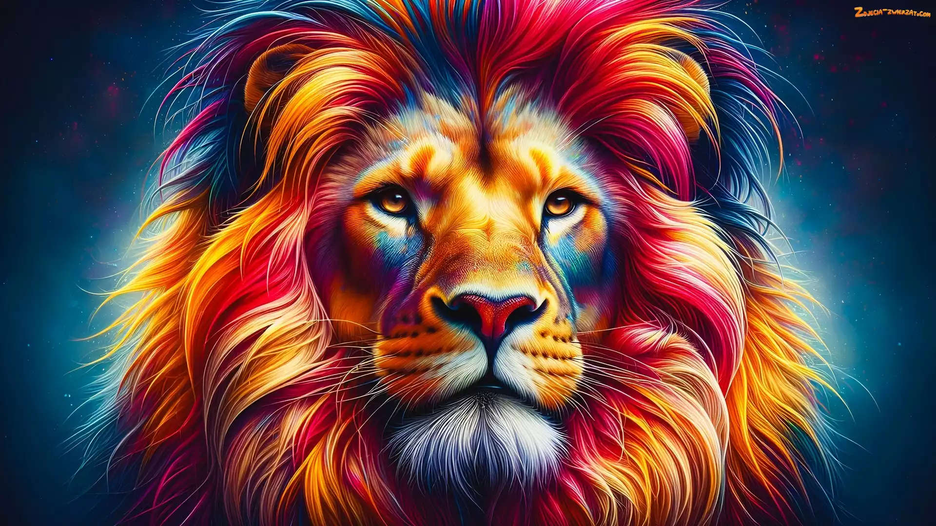 Zdjęcie: Lew, Kolorowy, Grafika, Grzywa