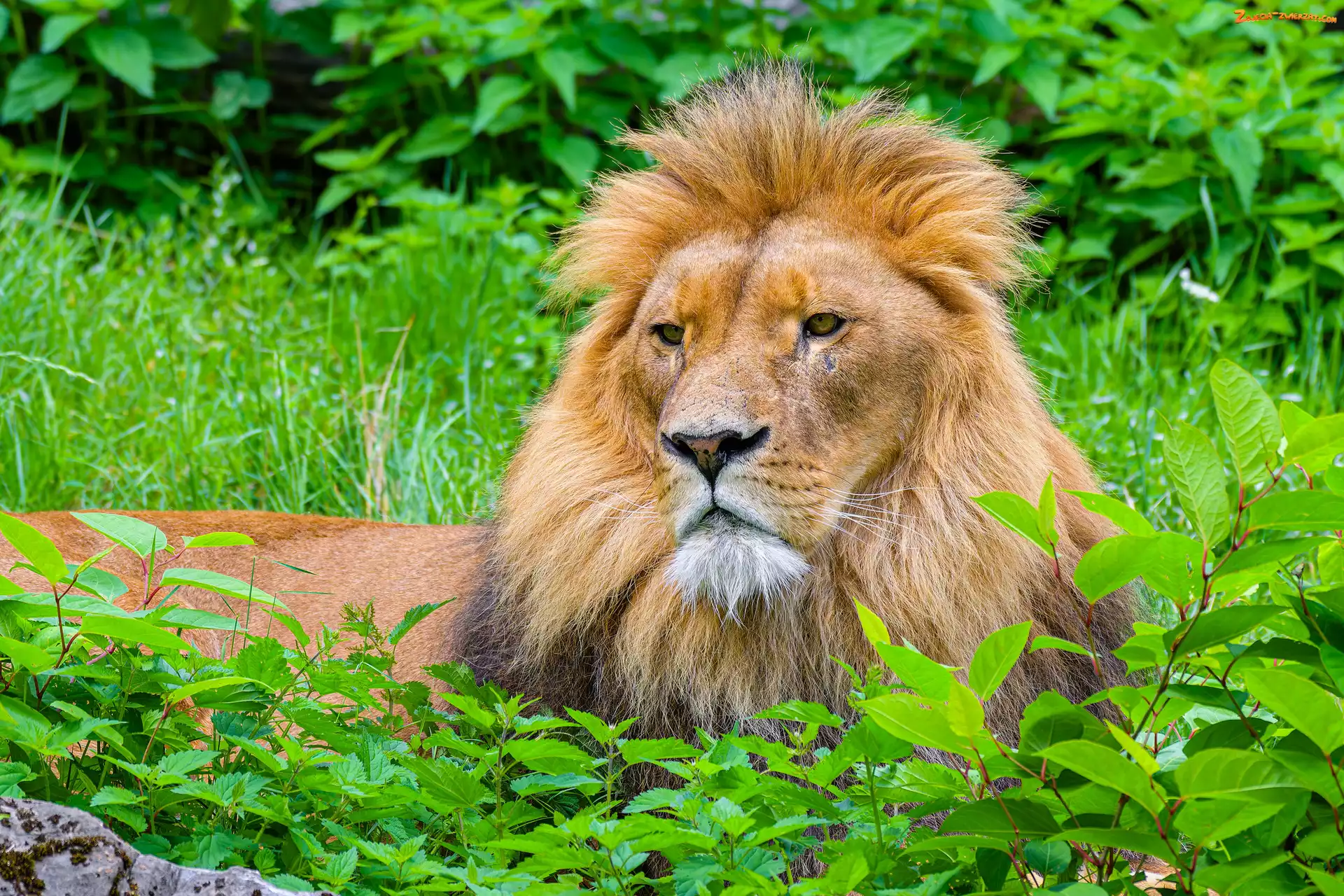 Leżący, Lew, Trawa, Grzywa