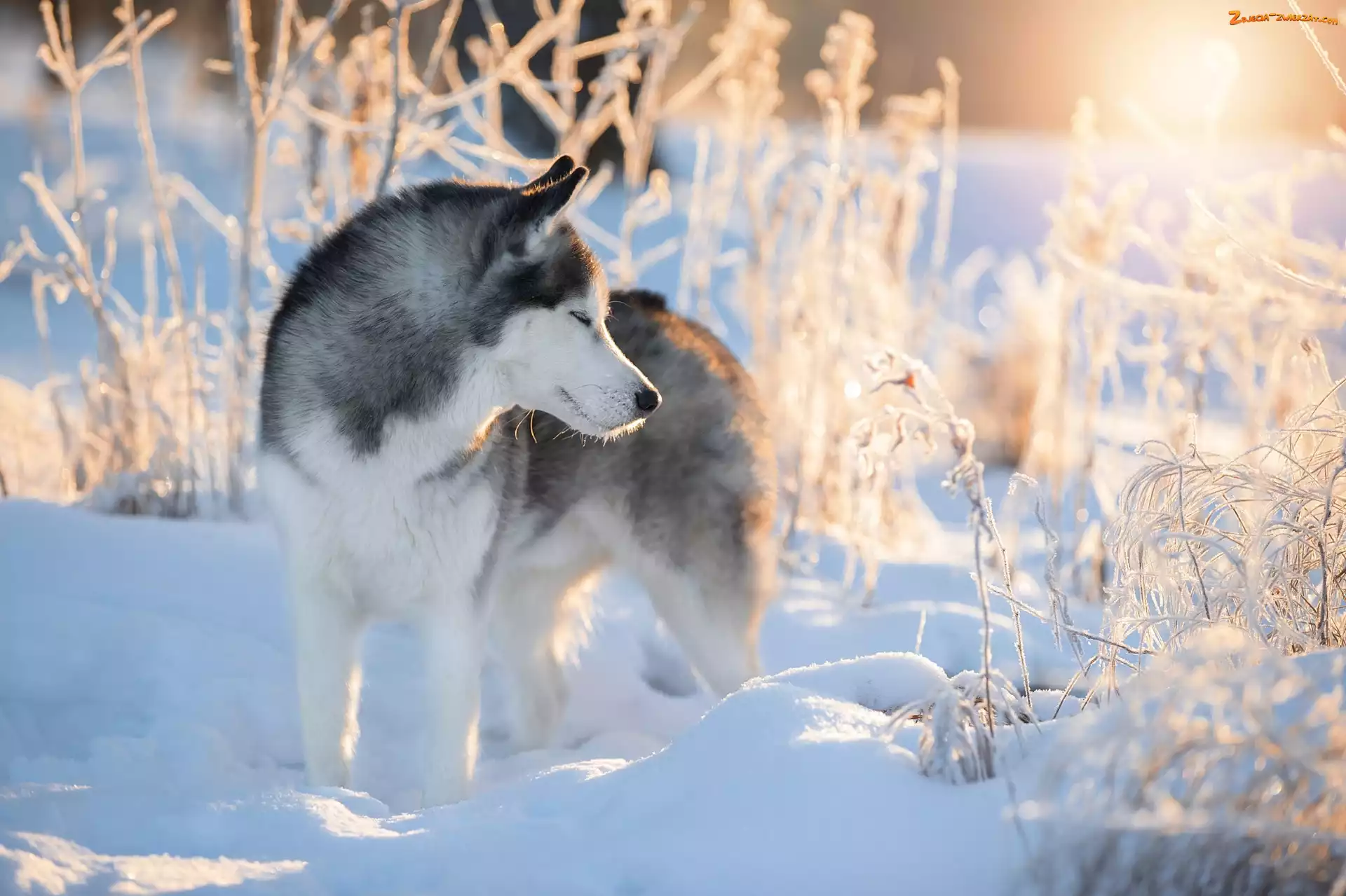 Zdjęcie: Siberian husky, Pies, Rośliny, Zima