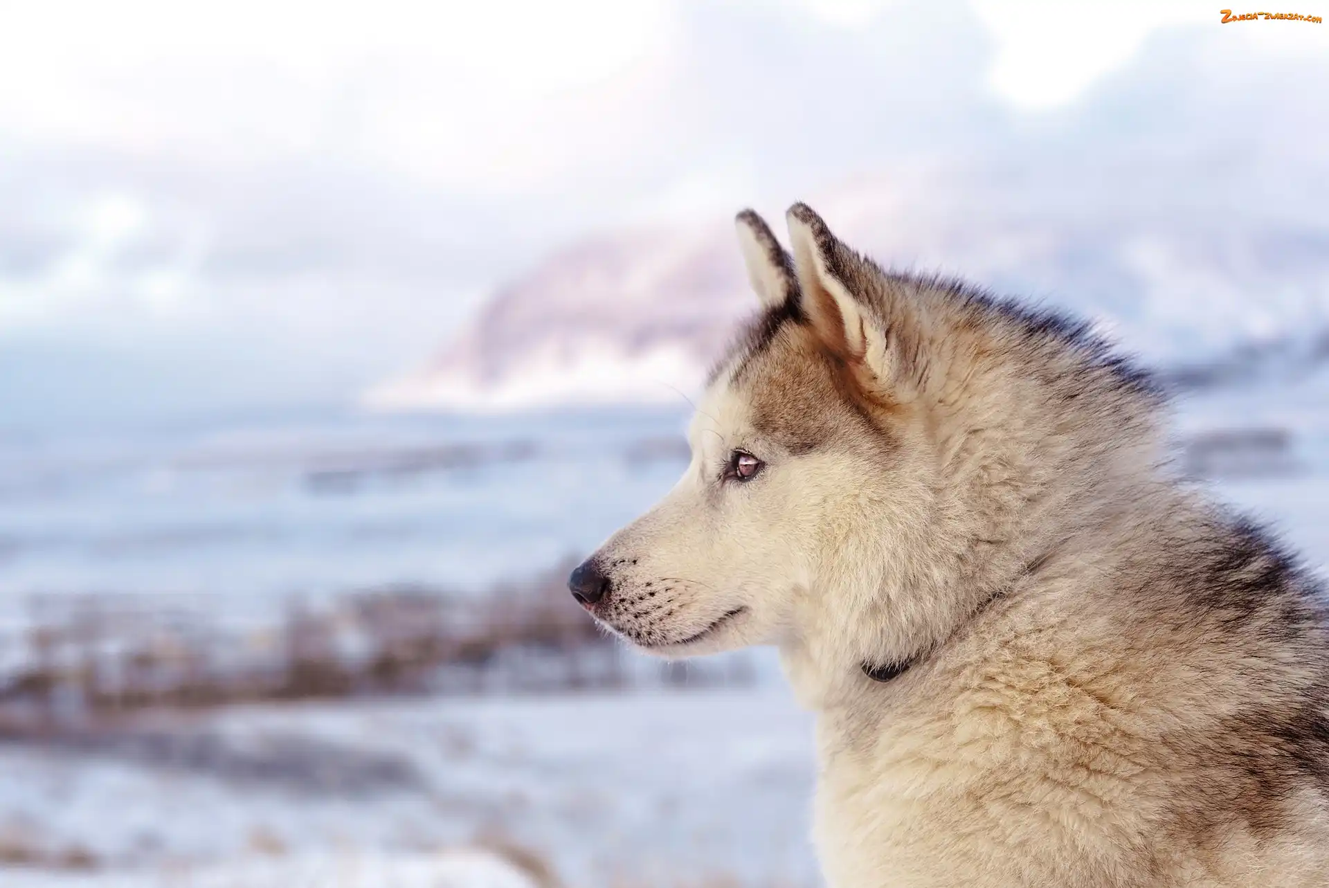 Zdjęcie: Siberian husky, Zima, Rozmyte Tło, Głowa, Pies, Profil