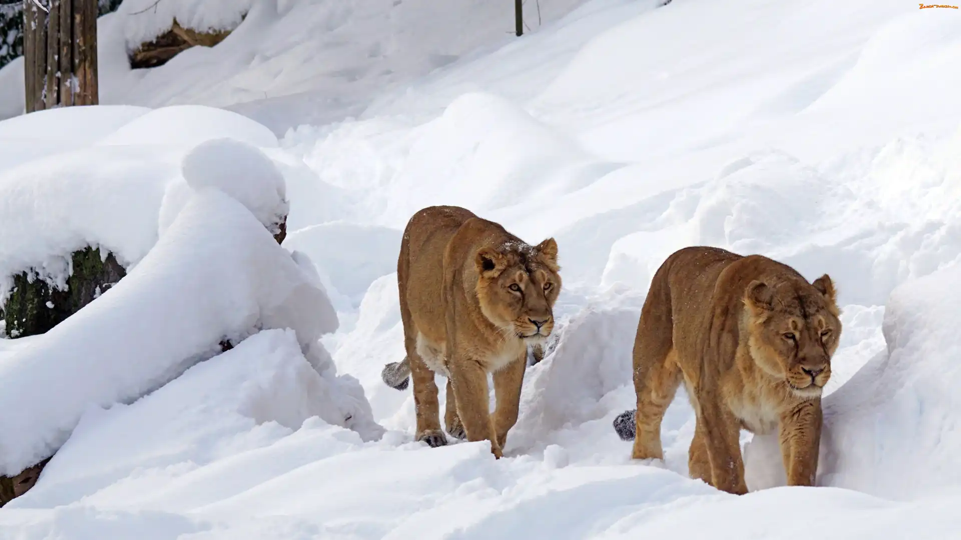 Zdjęcie: Idą, Śnieg, Lwy, Przez