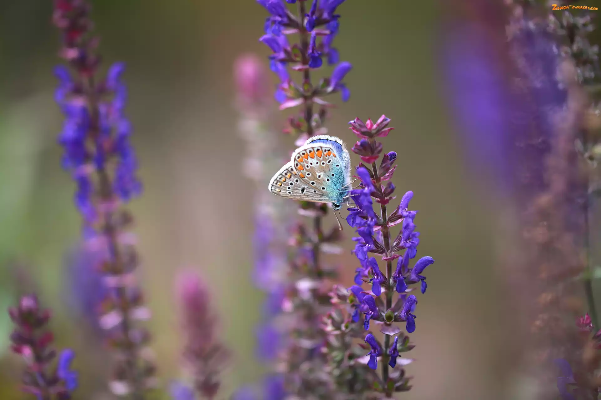 Modraszek ikar, Motyl, Kwiaty, Fioletowe