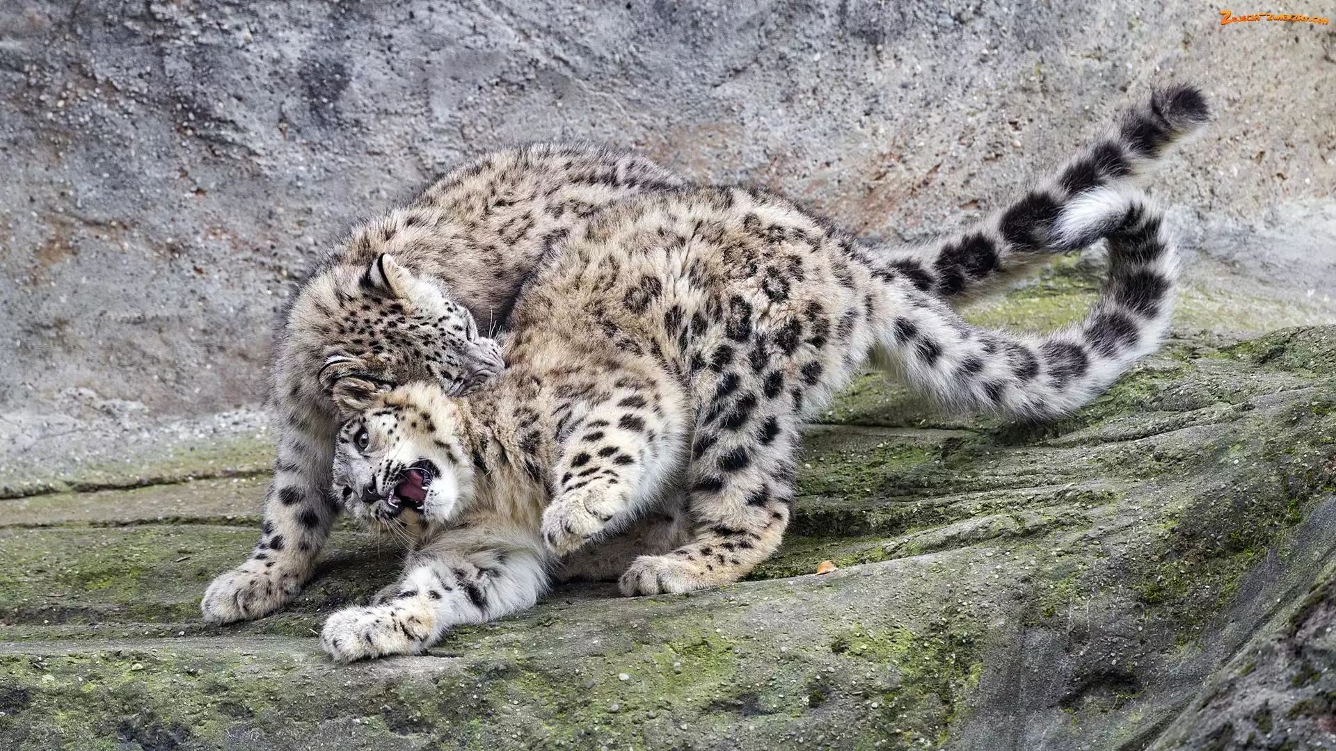 Dwa, Irbisy śnieżne, Zabawa, Skała