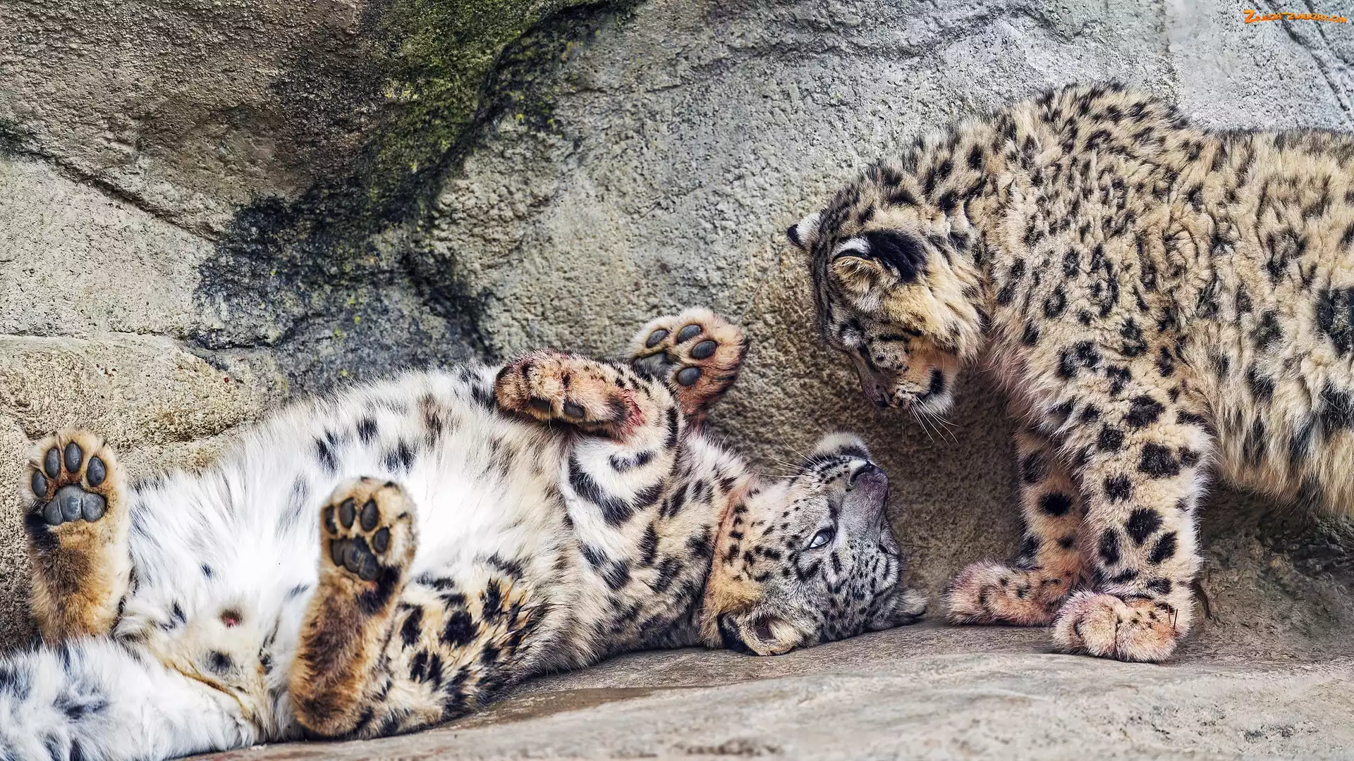 Dwa, Irbisy śnieżne, Skały, Zabawa