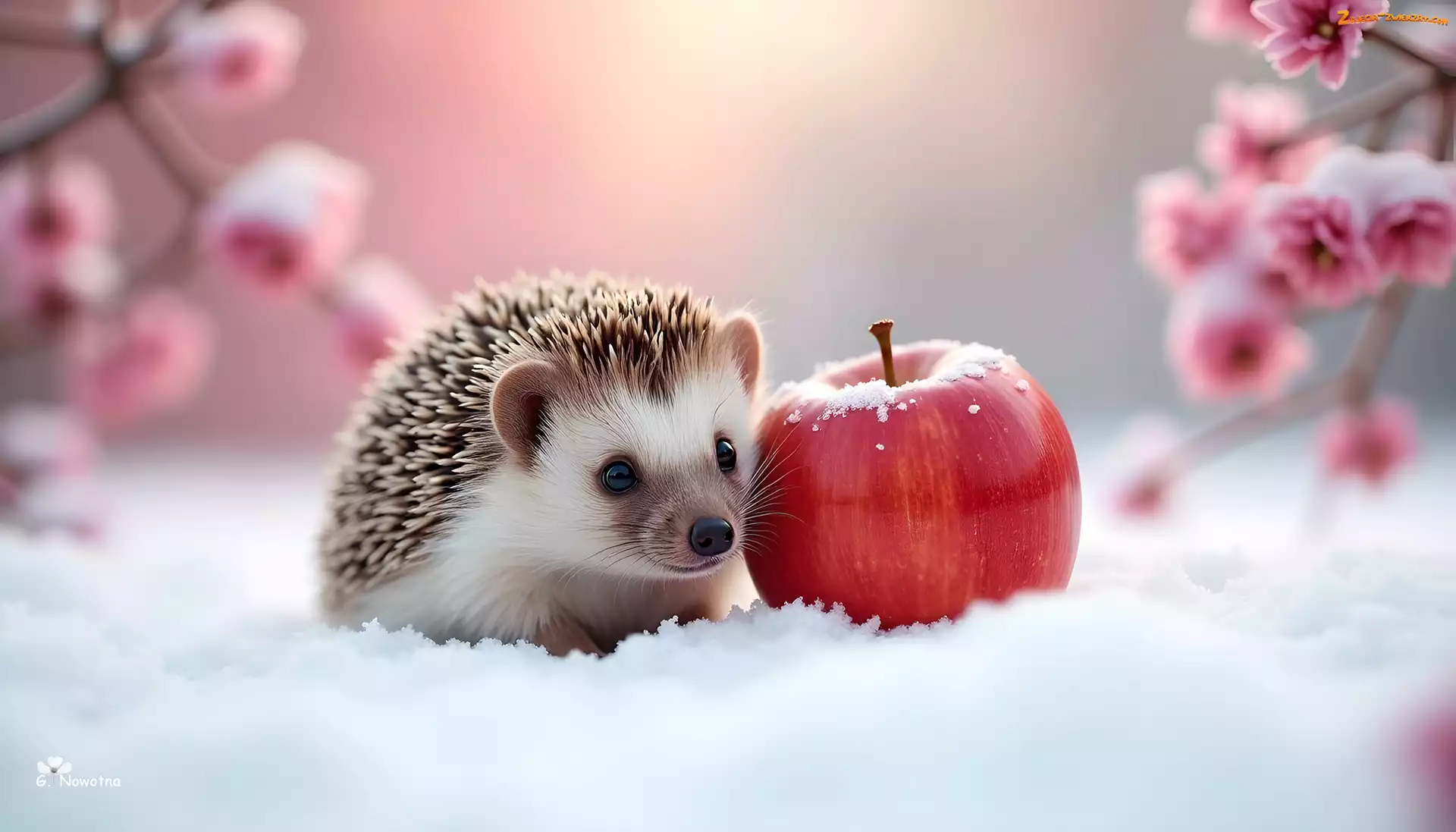 Zdjęcie: Śnieg, Jabłko, Grafika, Jeż, Czerwone