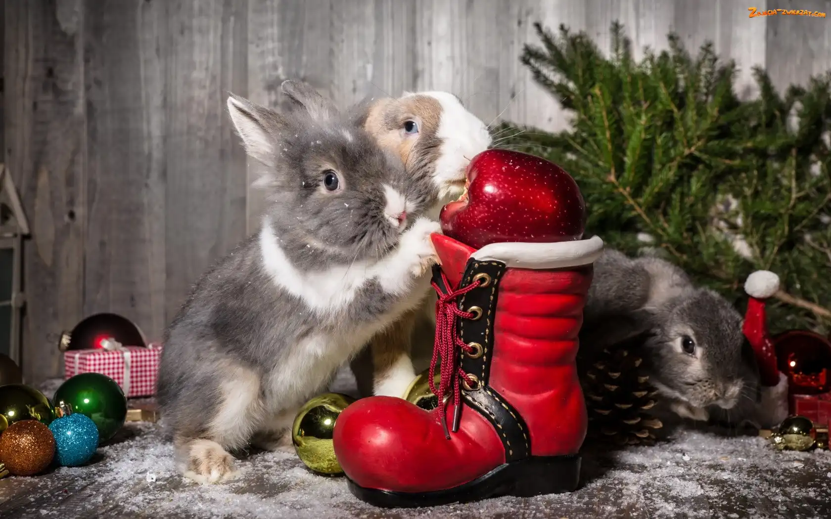 Jabłko, Bombki, Czerwony, Króliki, Bucik