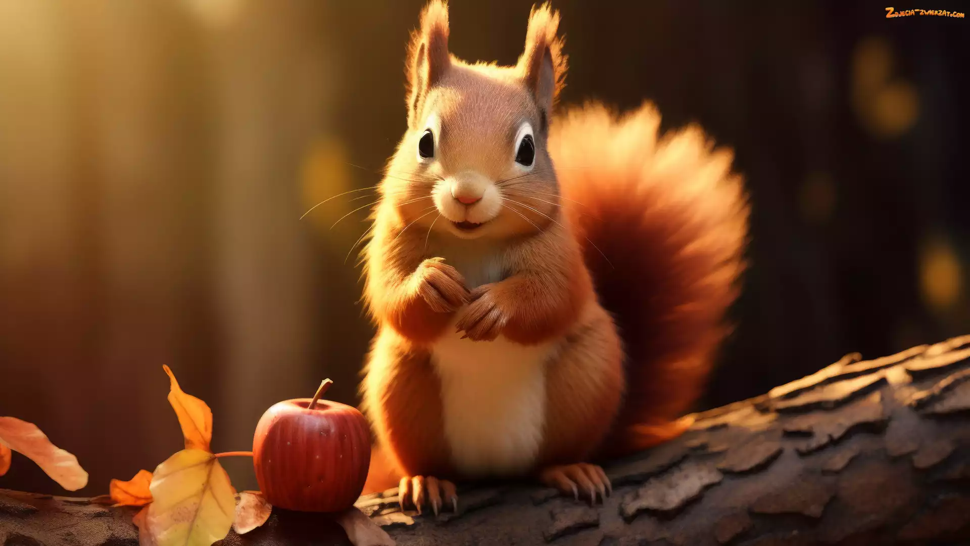 Zdjęcie: Liście, Jabłko, Światło, Wiewiórka, Konar