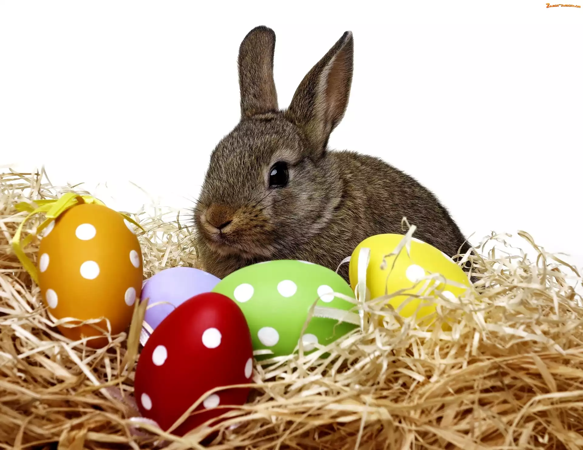 Zdjęcie: Jajka, Wielkanoc, Zajączek, Sianko