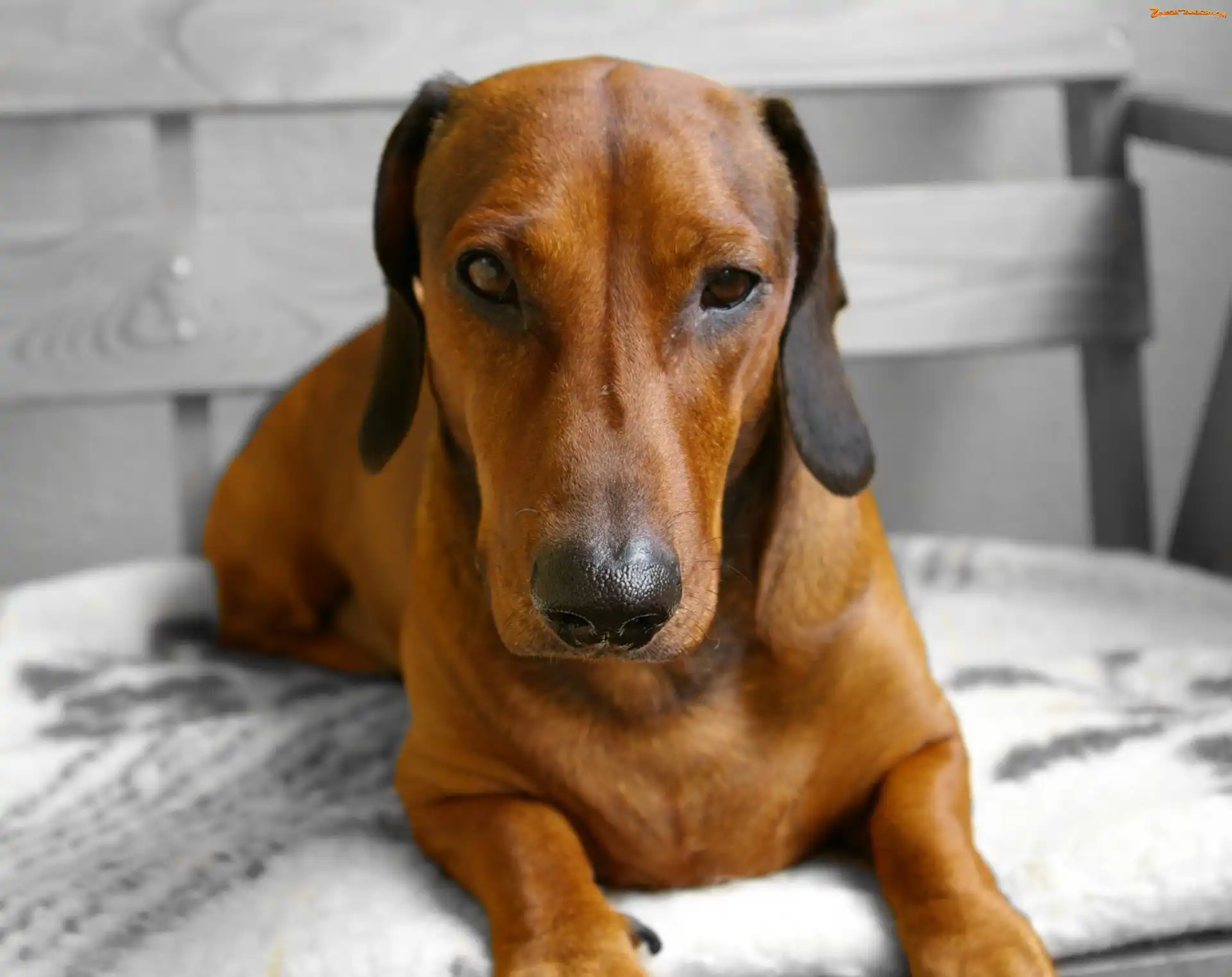 Zdjęcie: Kocyk, Jamnik, Ławeczka