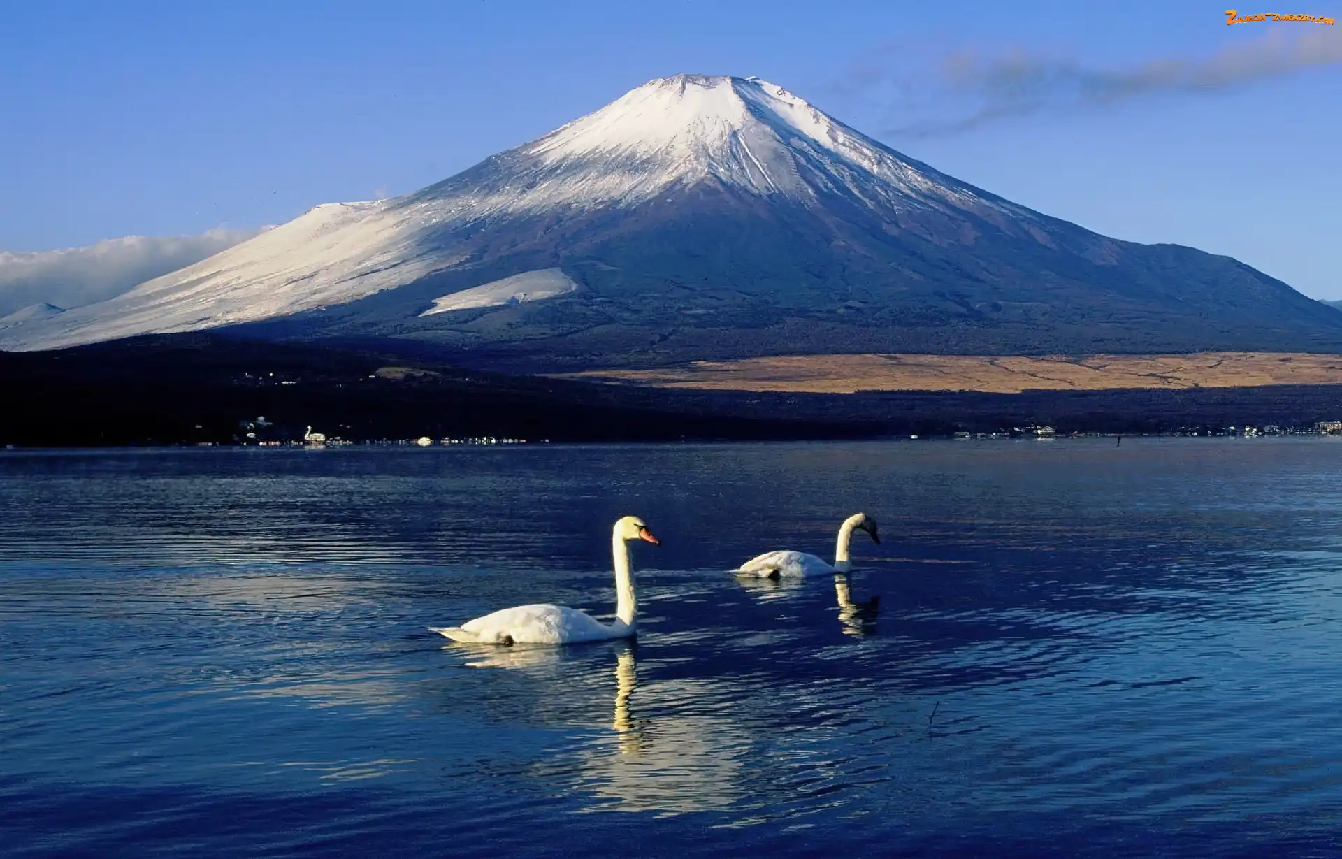 Zdjęcie: Japonia, Fudżi, Łabędzie, Jezioro, Góra