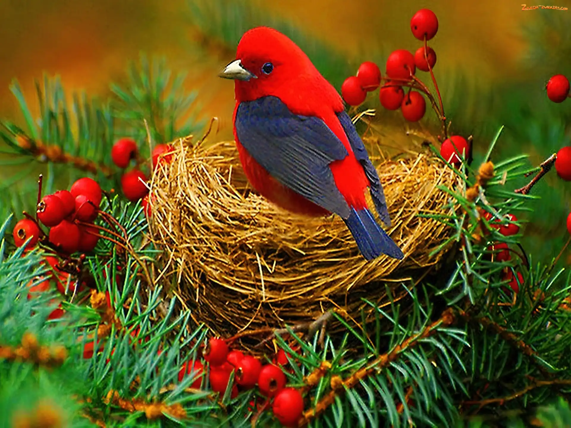 Zdjęcie: Jarzębina, Ptak, Czerwono, Gniazdo, Niebieski