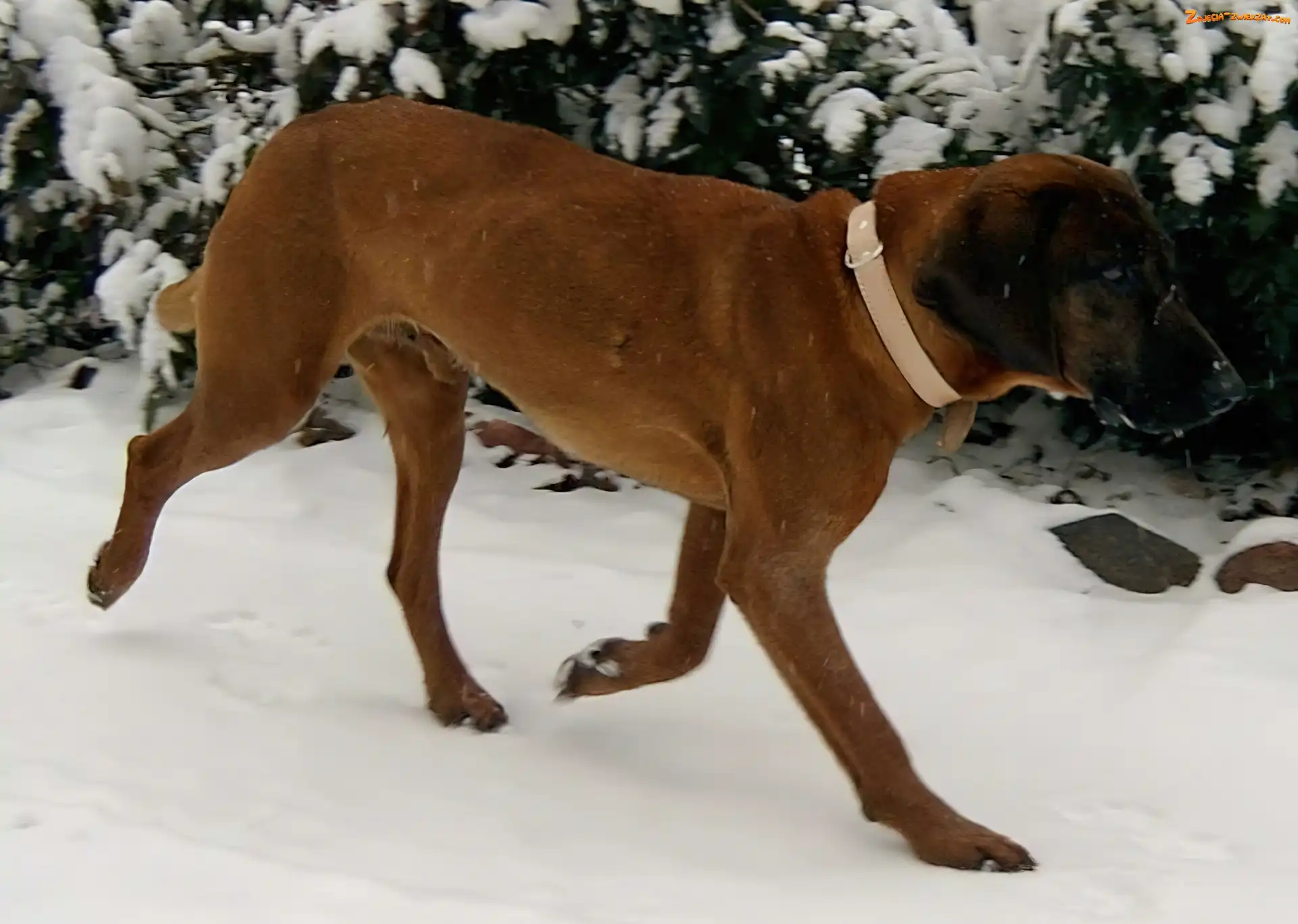 Zdjęcie: jasna, śnieg, Posokowiec bawarski, obroża