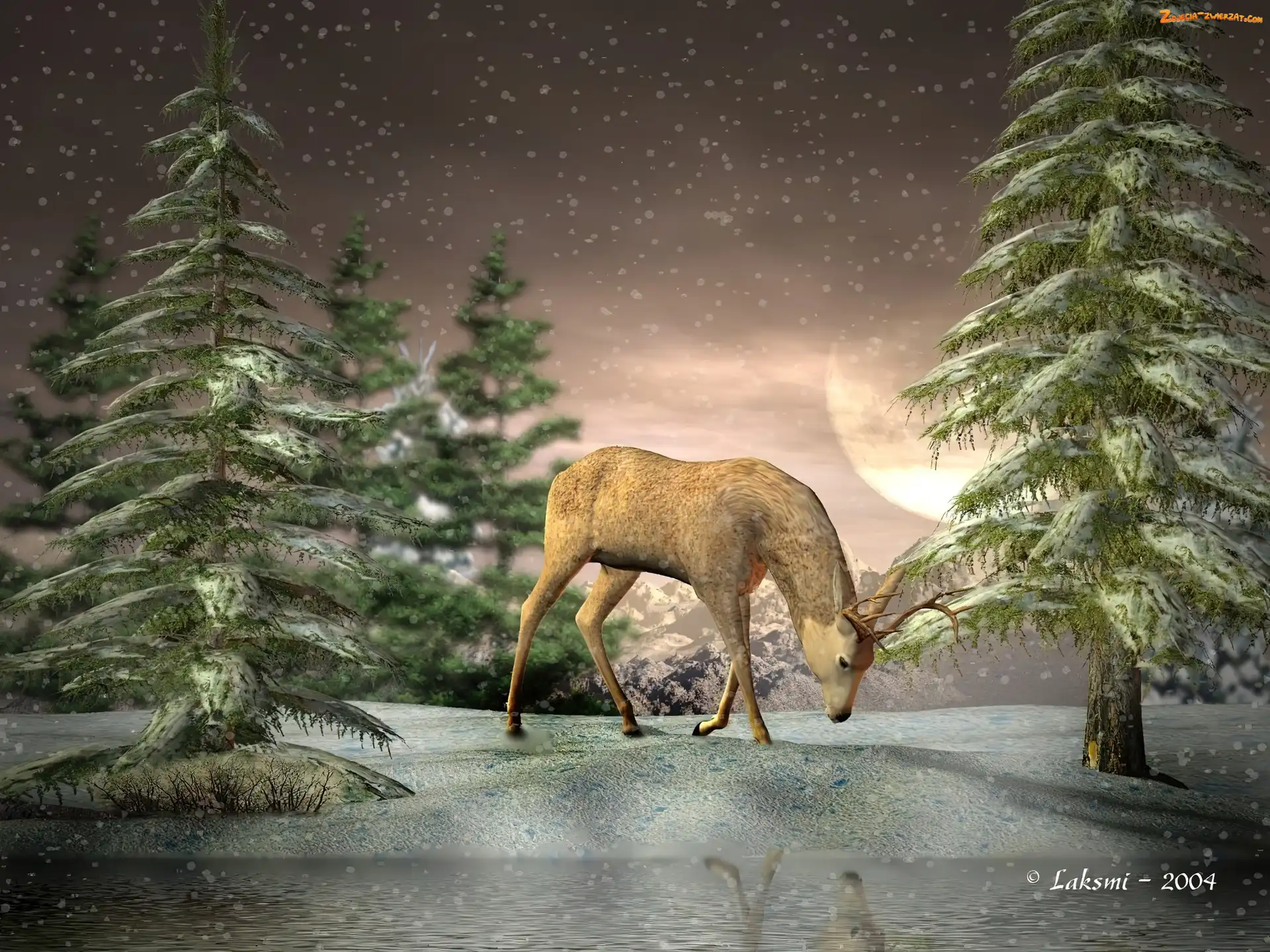 Zdjęcie: Śnieg, 3D, Jeleń, Las