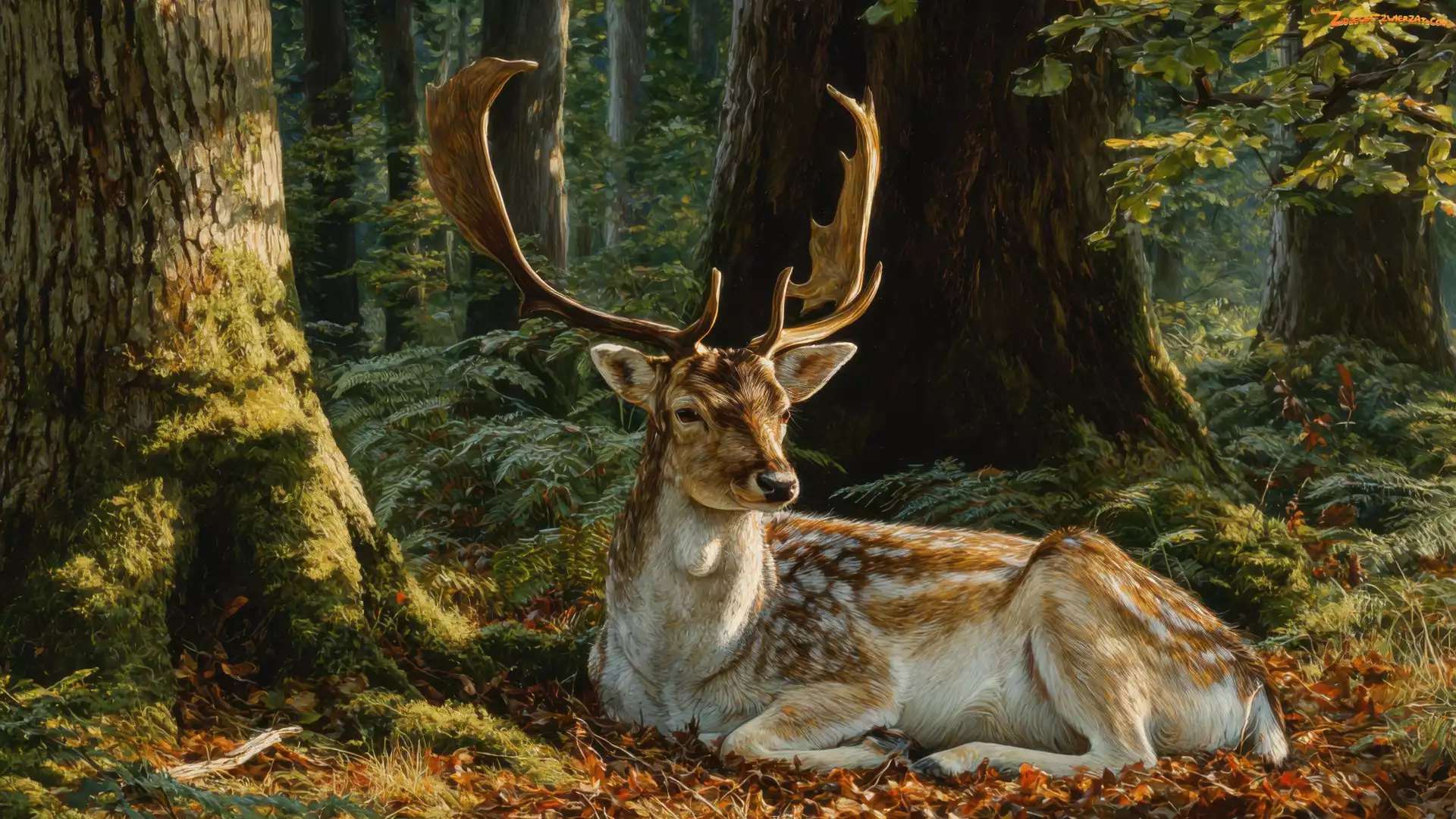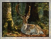 Daniel, Jeleń, Drzewo, Las, Leżący