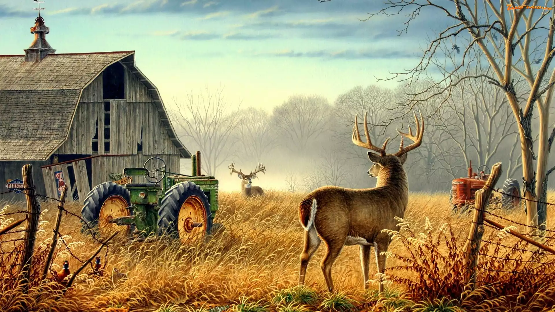 Zdjęcie: Jelenie, Traktory, Dwa, Pole