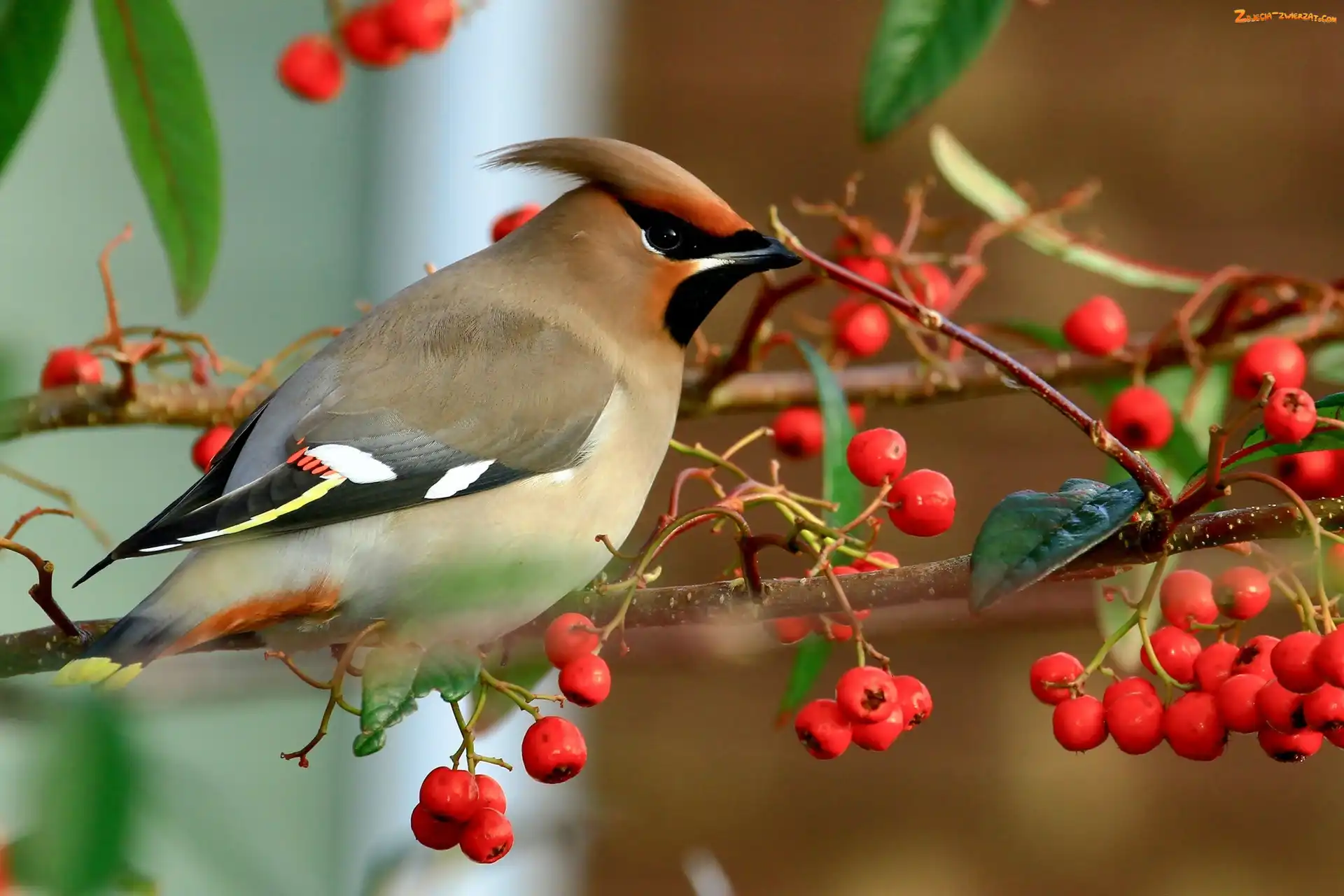 Jemiołuszka, Gałązki, Ptak, Jarzębina