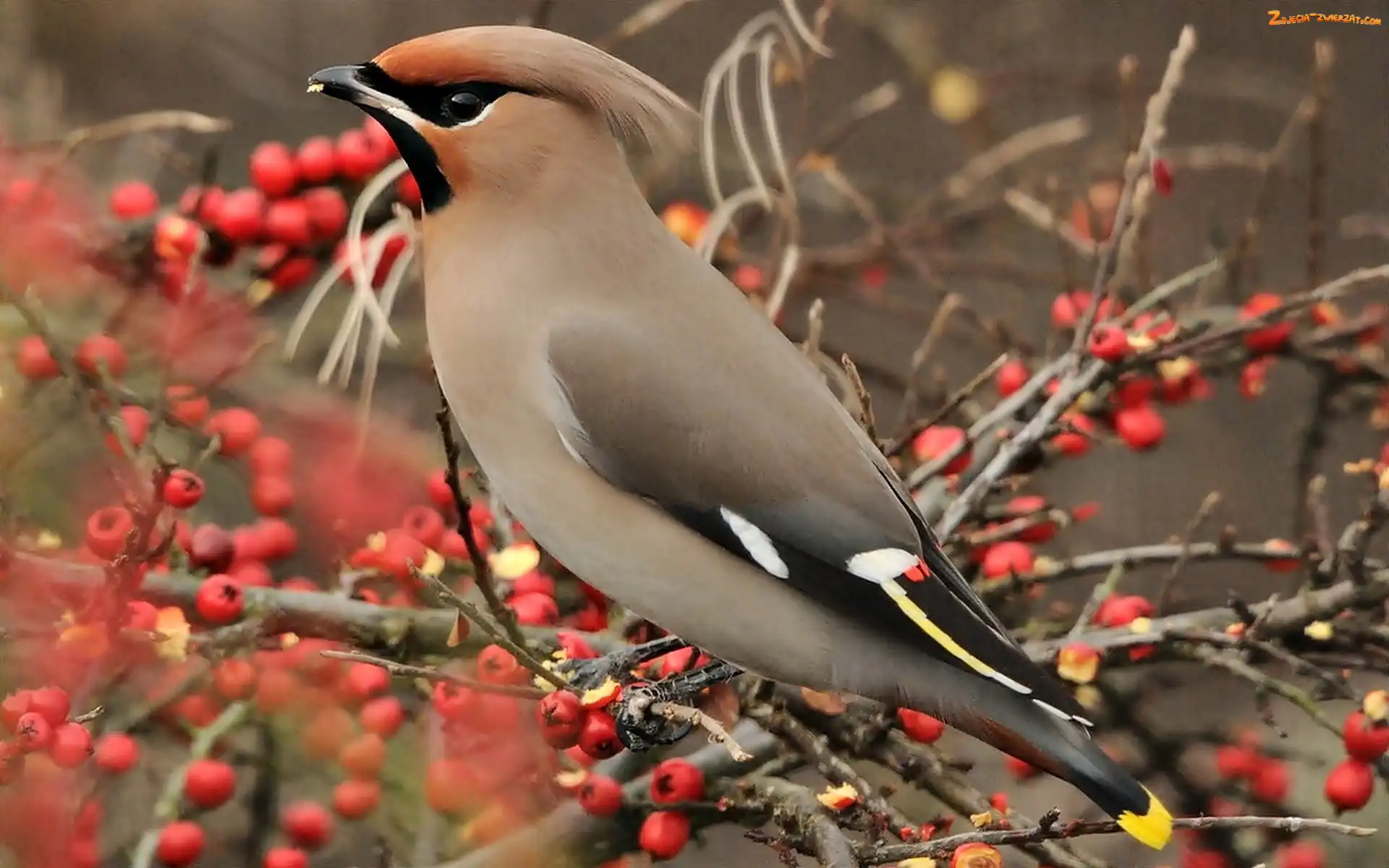 Jemiołuszka, Gałązki, Ptak, Jarzębina