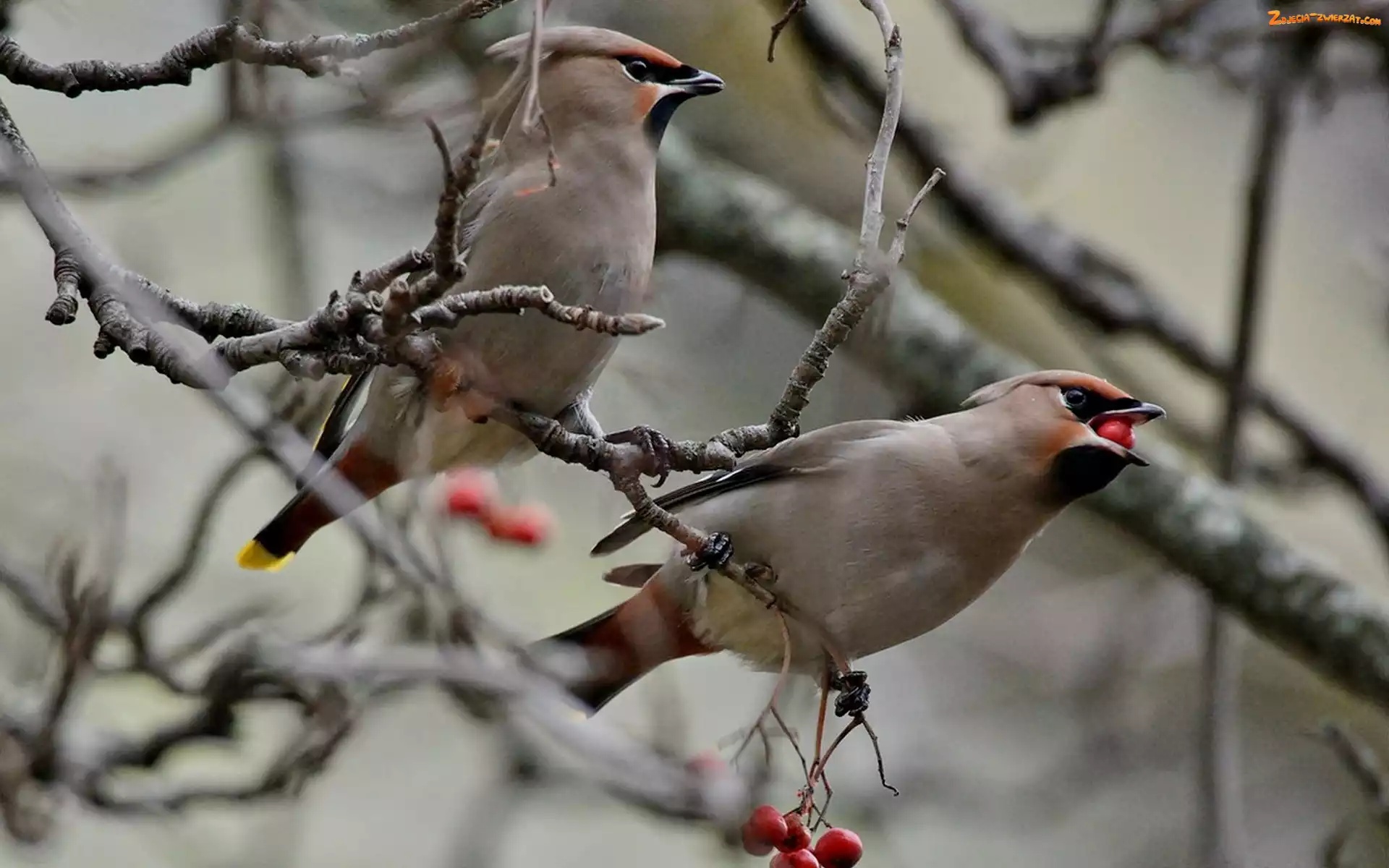 Zdjęcie: Jemiołuszki, Gałęzie, Dwie, Jarzębina