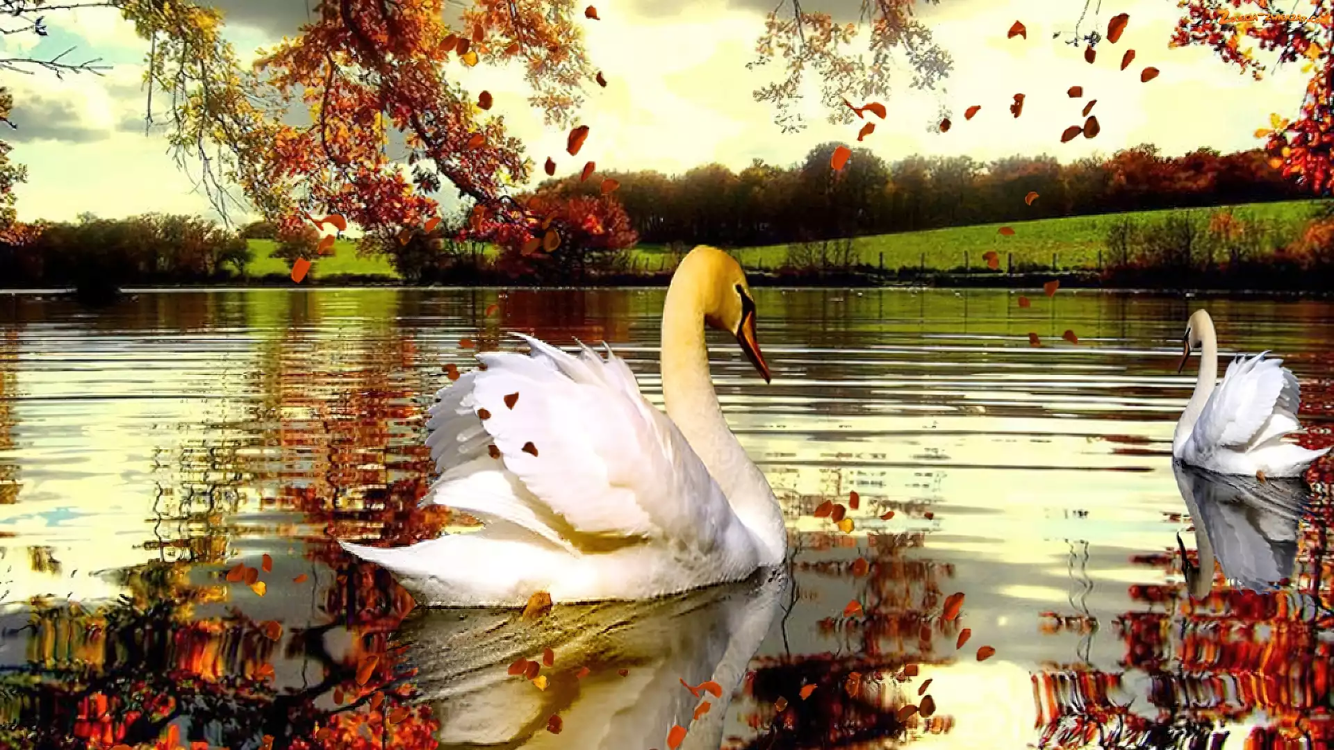 Jesień, Łabędzie, Jezioro, Dwa