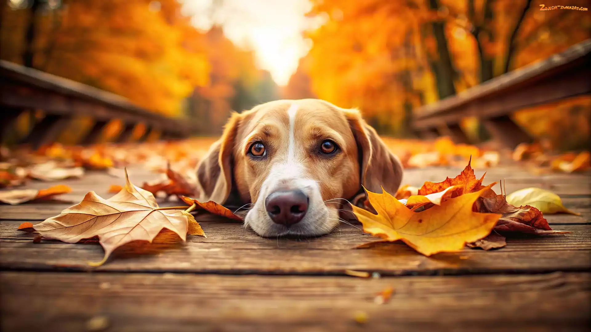 Zdjęcie: Pies, Liście, Grafika, Jesień