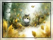 Zdjęcie: Kot, Jesienne, Grafika AI, Liście