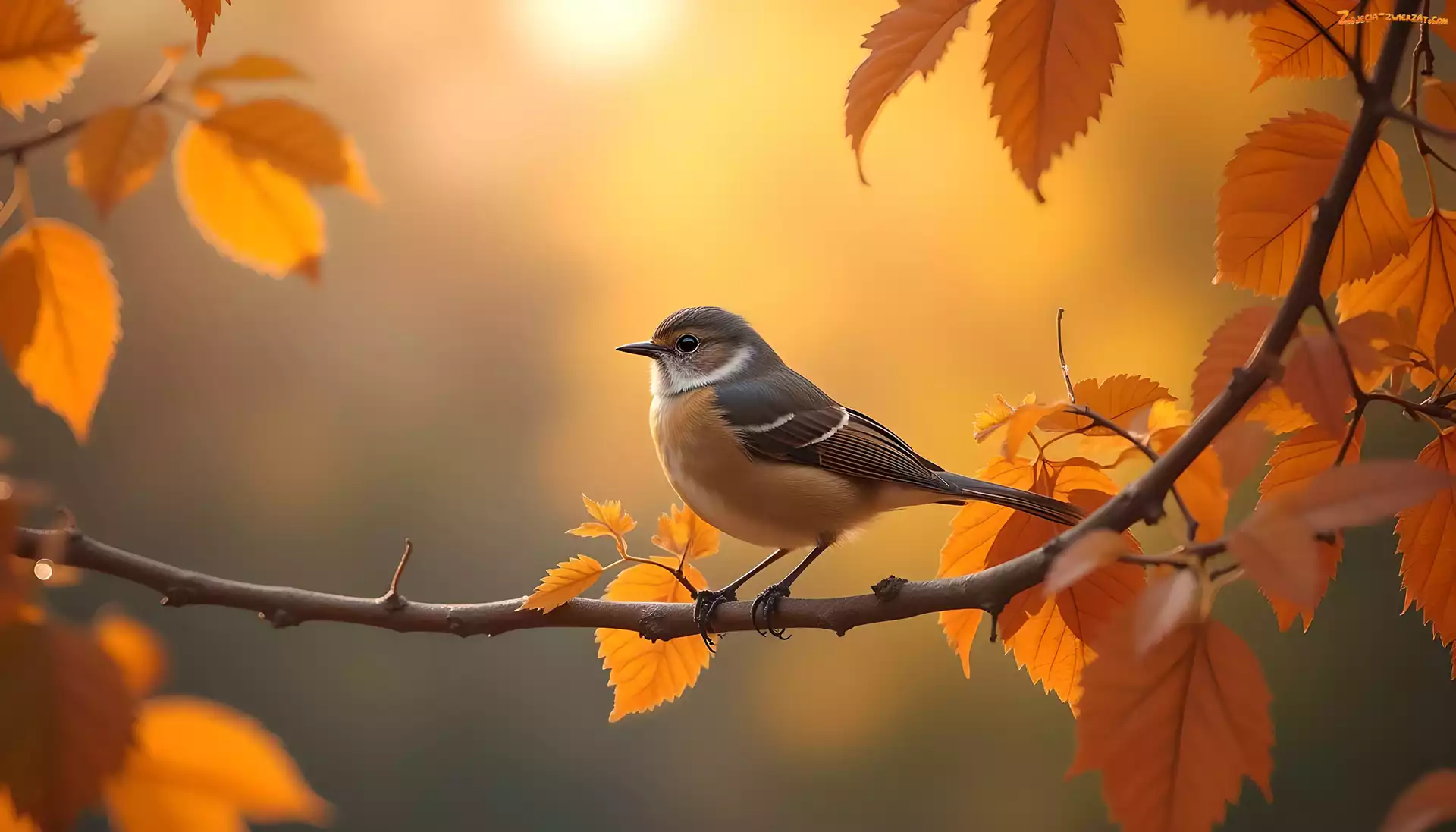 Liście, Jesienne, Grafika, Brązowy, Ptak