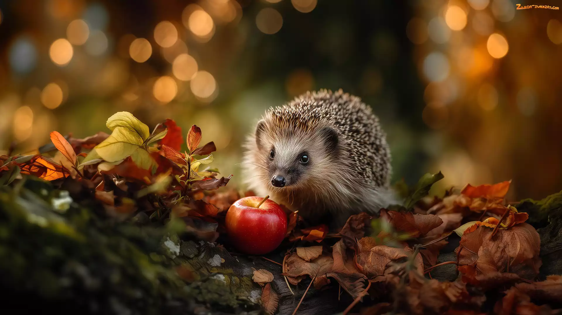 Zdjęcie: Grafika AI, Suche, Jeż, Jabłko, Jesienne, Liście