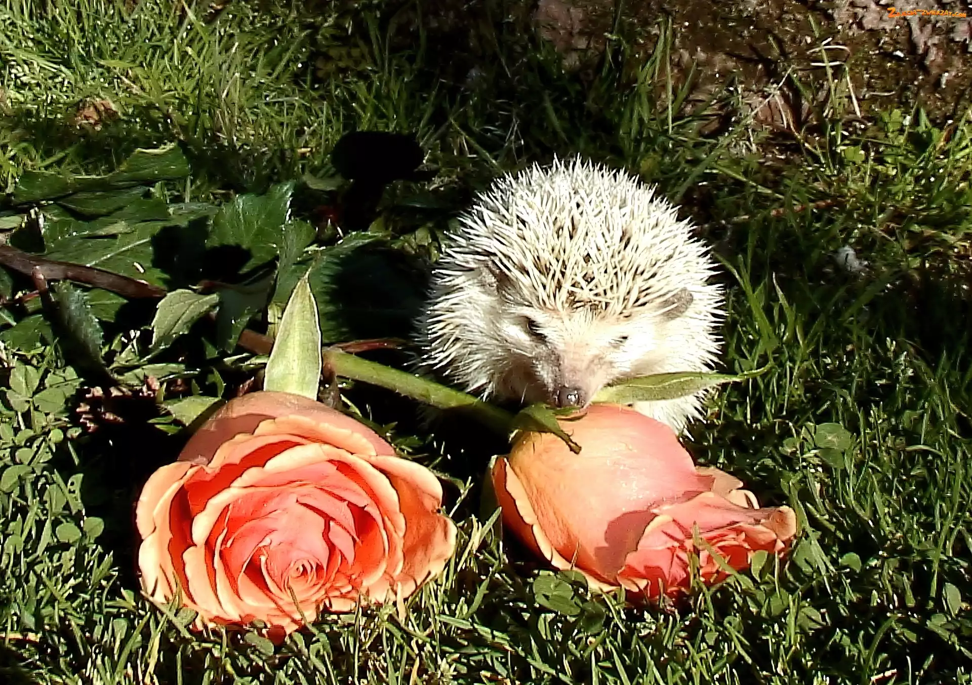 Zdjęcie: Trawa, Jeż, Róże