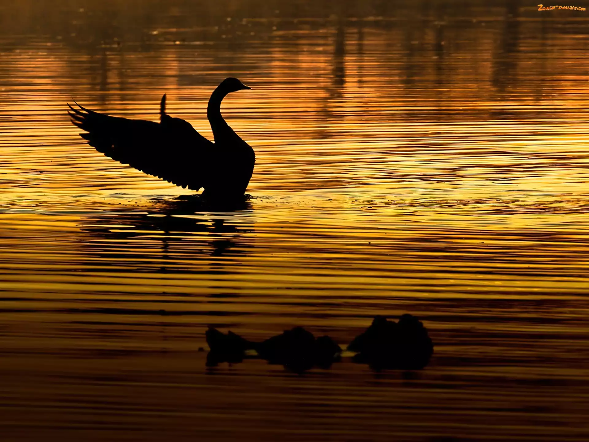 Zdjęcie: Jezioro, Słońca, Łabędź, Zachód