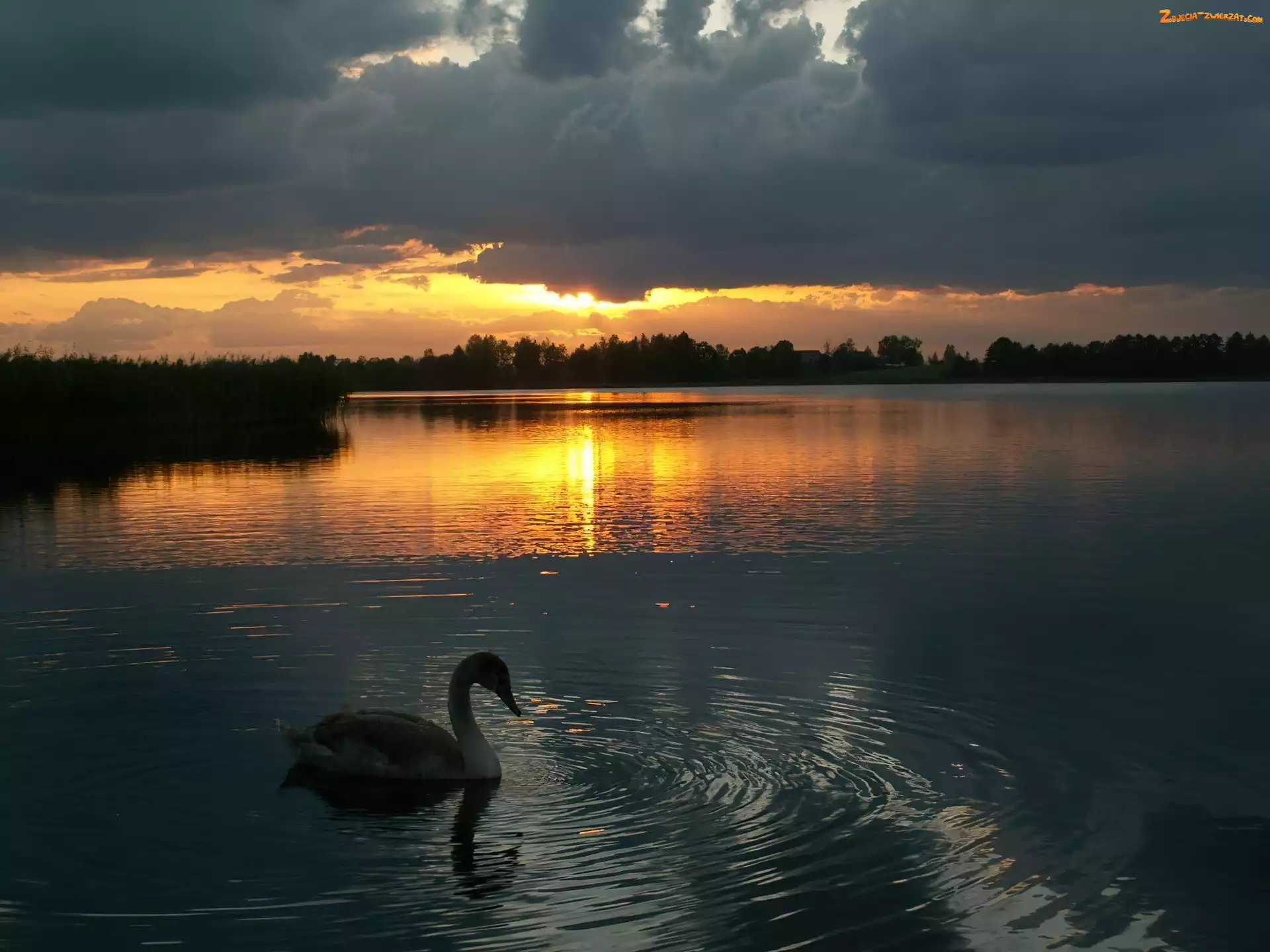 Jezioro, Słońca, Łabędź, Zachód