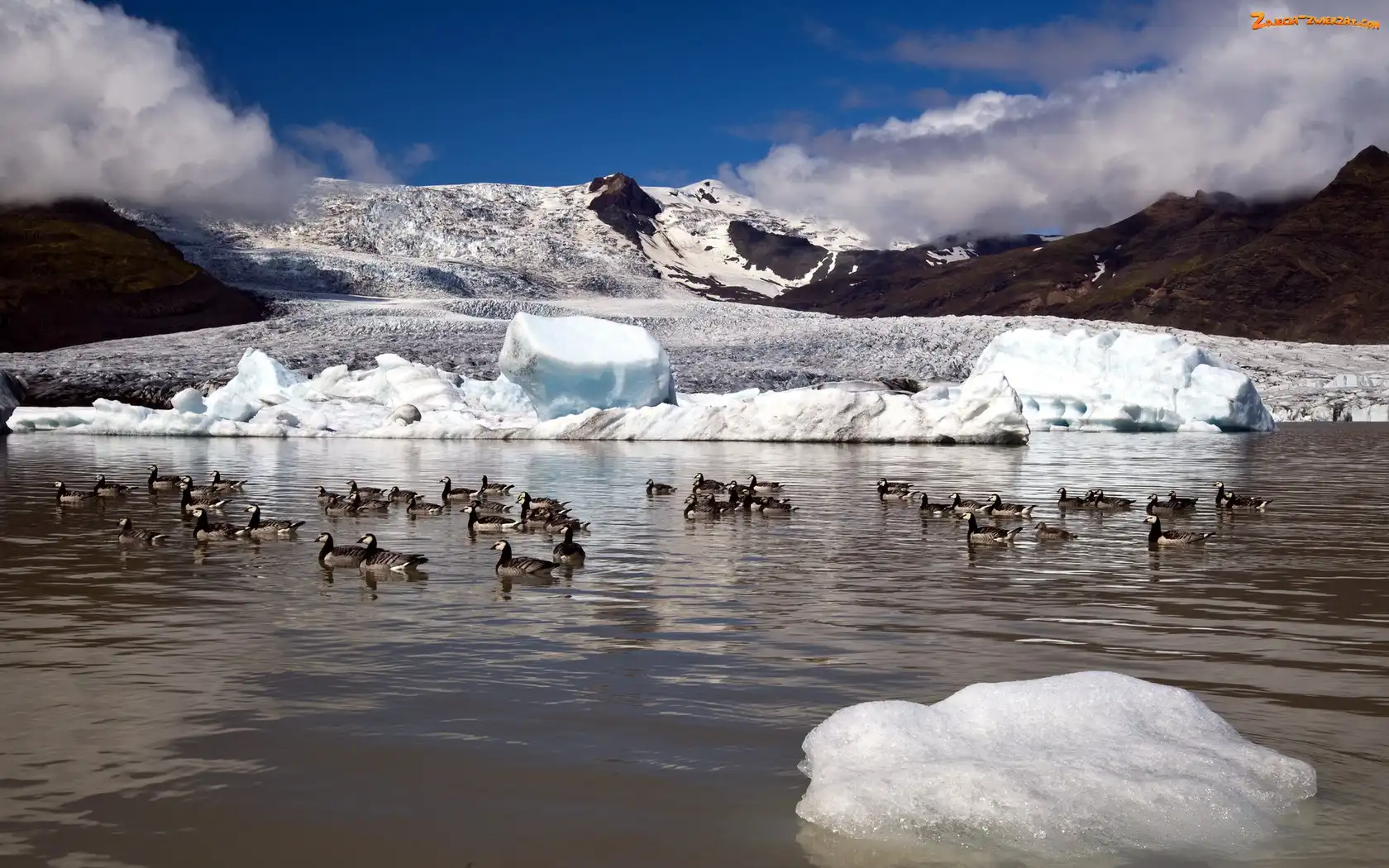 Zdjęcie: Jezioro, Kaczki, Góry, Lód